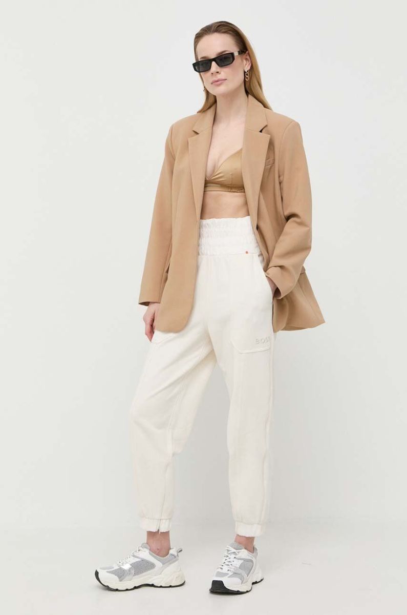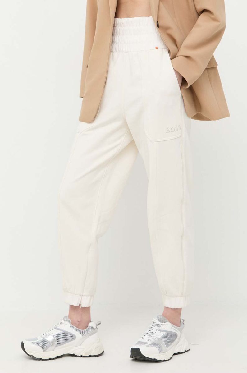 Бавовняні спортивні штани BOSS колір білий однотонні