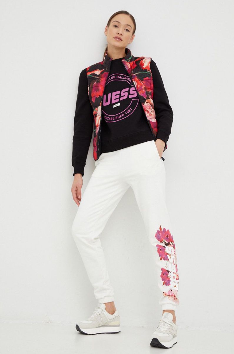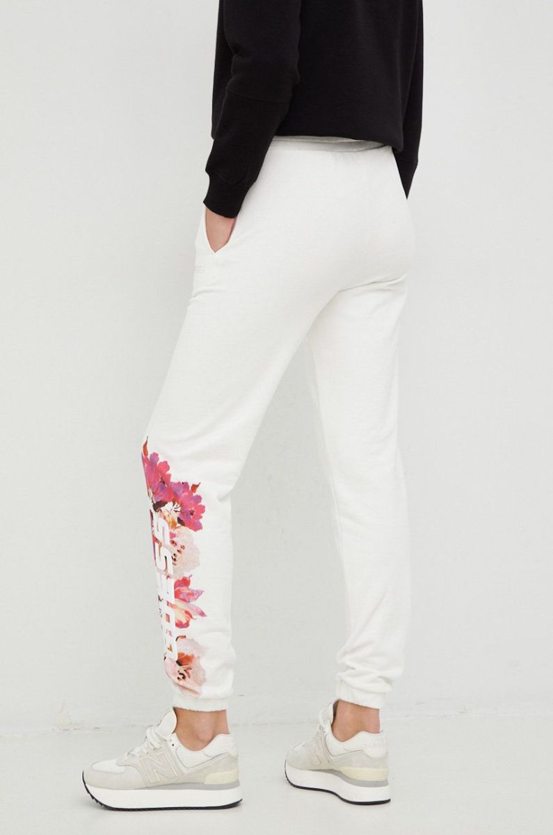 Бавовняні спортивні штани Guess жіночі колір бежевий з принтом