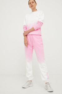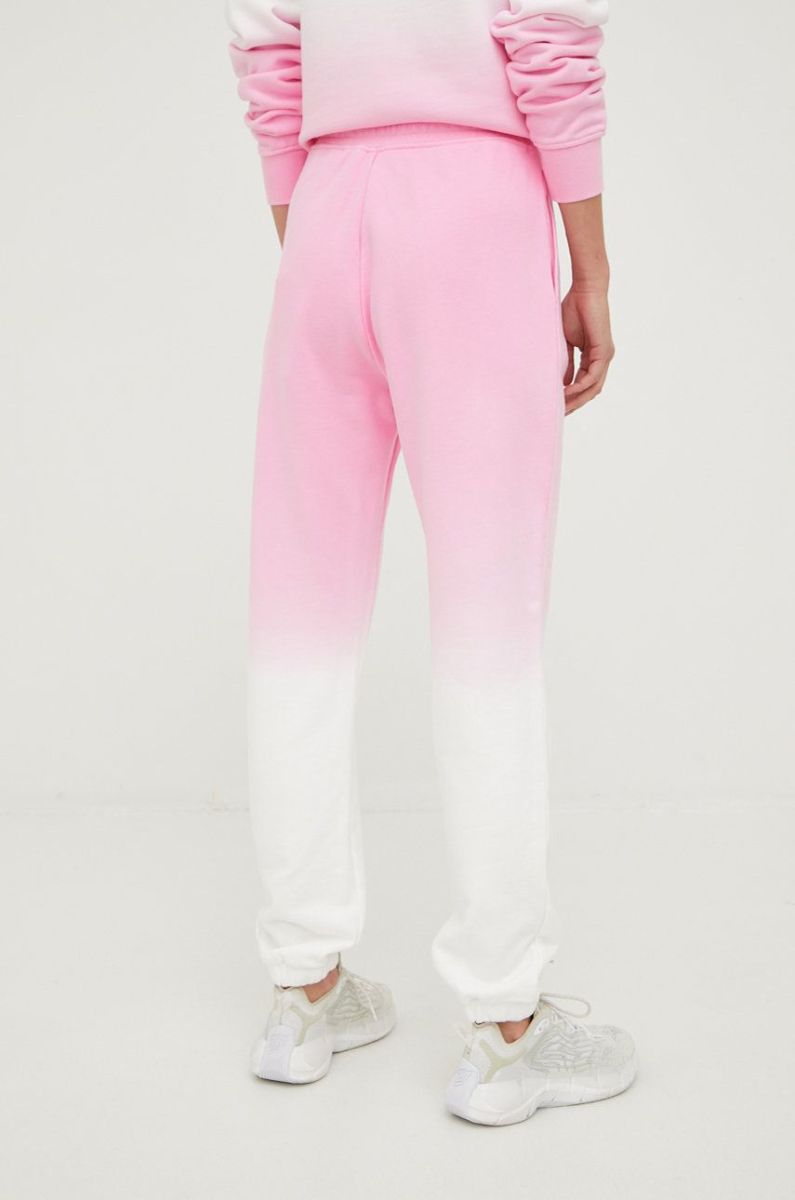 Бавовняні спортивні штани Guess жіночі колір рожевий з принтом