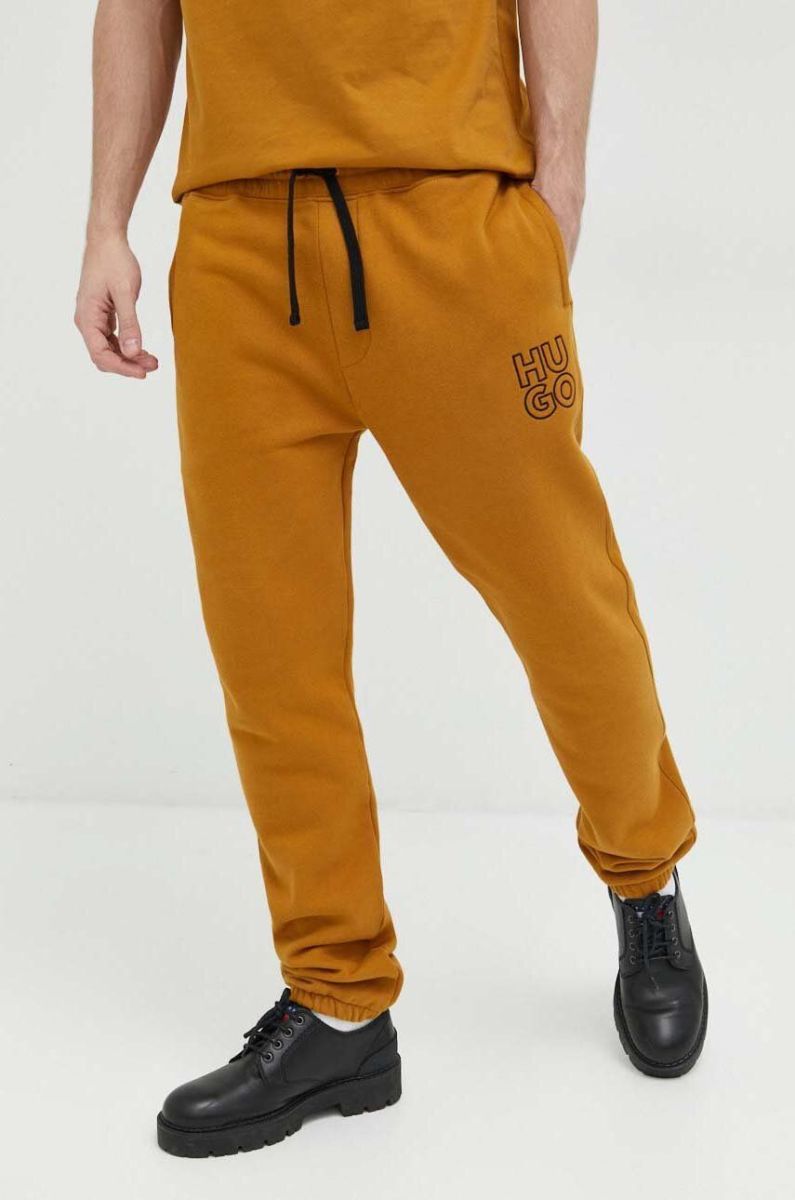 Бавовняні спортивні штани HUGO чоловічі колір коричневий однотонні