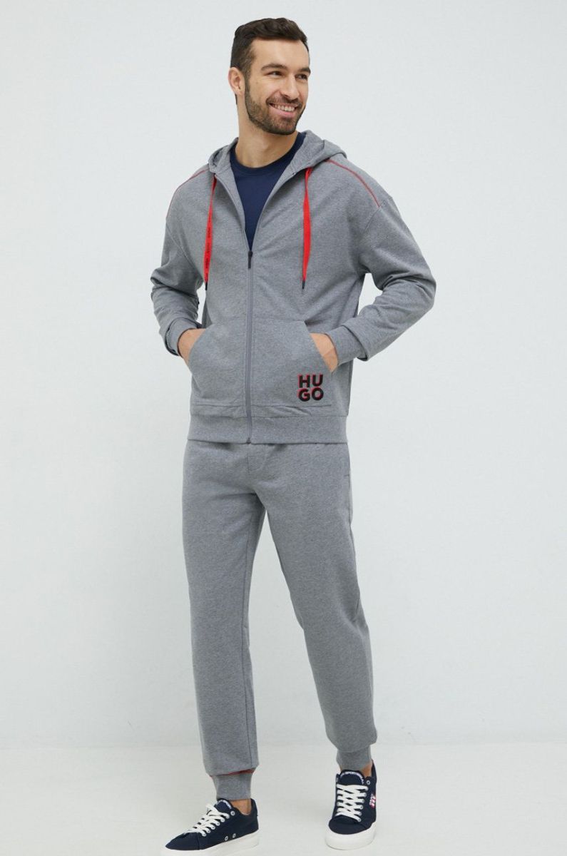 Бавовняні спортивні штани HUGO чоловічі колір сірий однотонні (2754901)