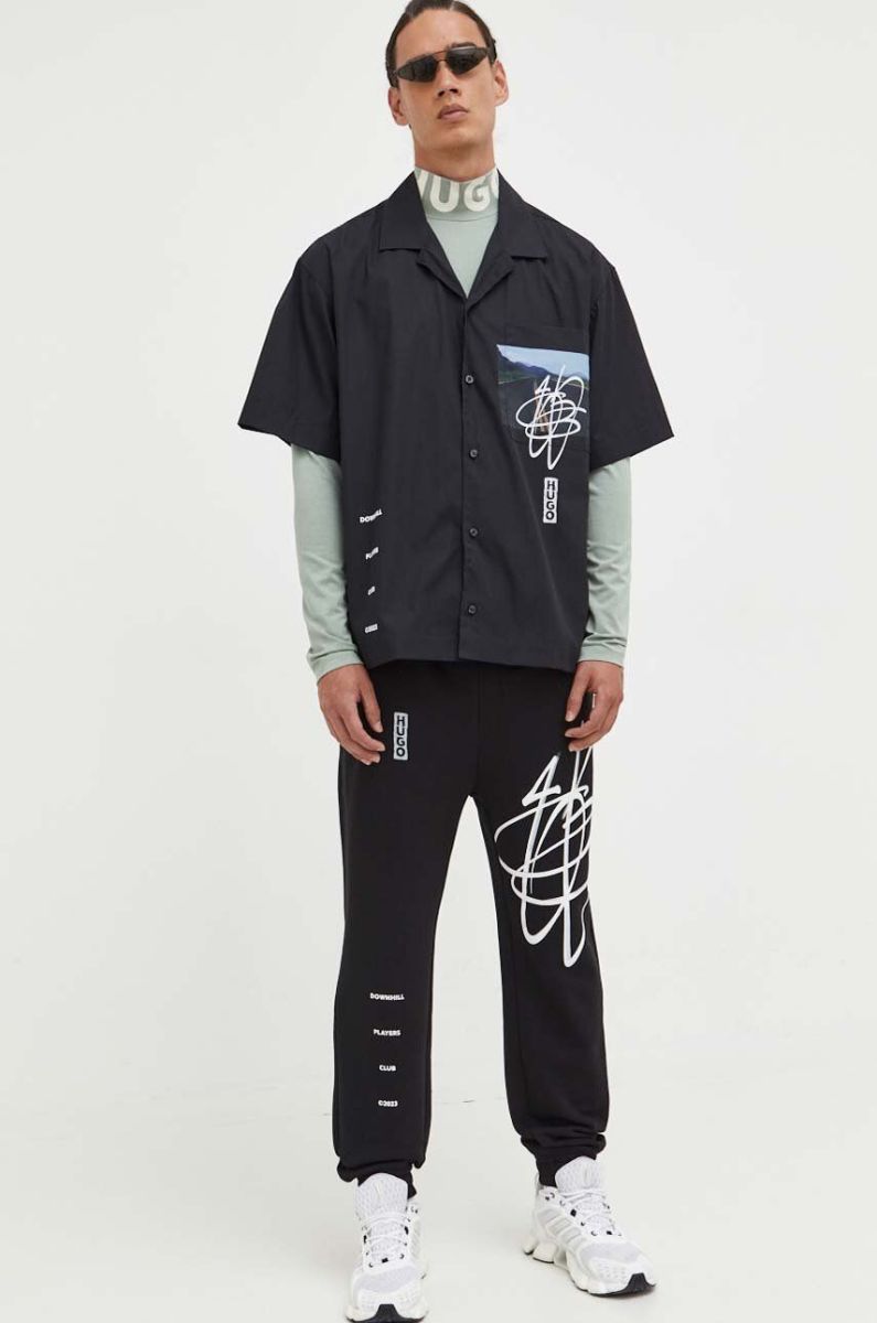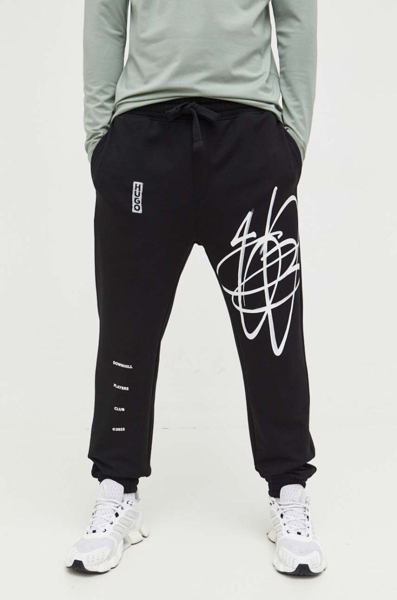 Бавовняні спортивні штани HUGO колір чорний з принтом (3306104)