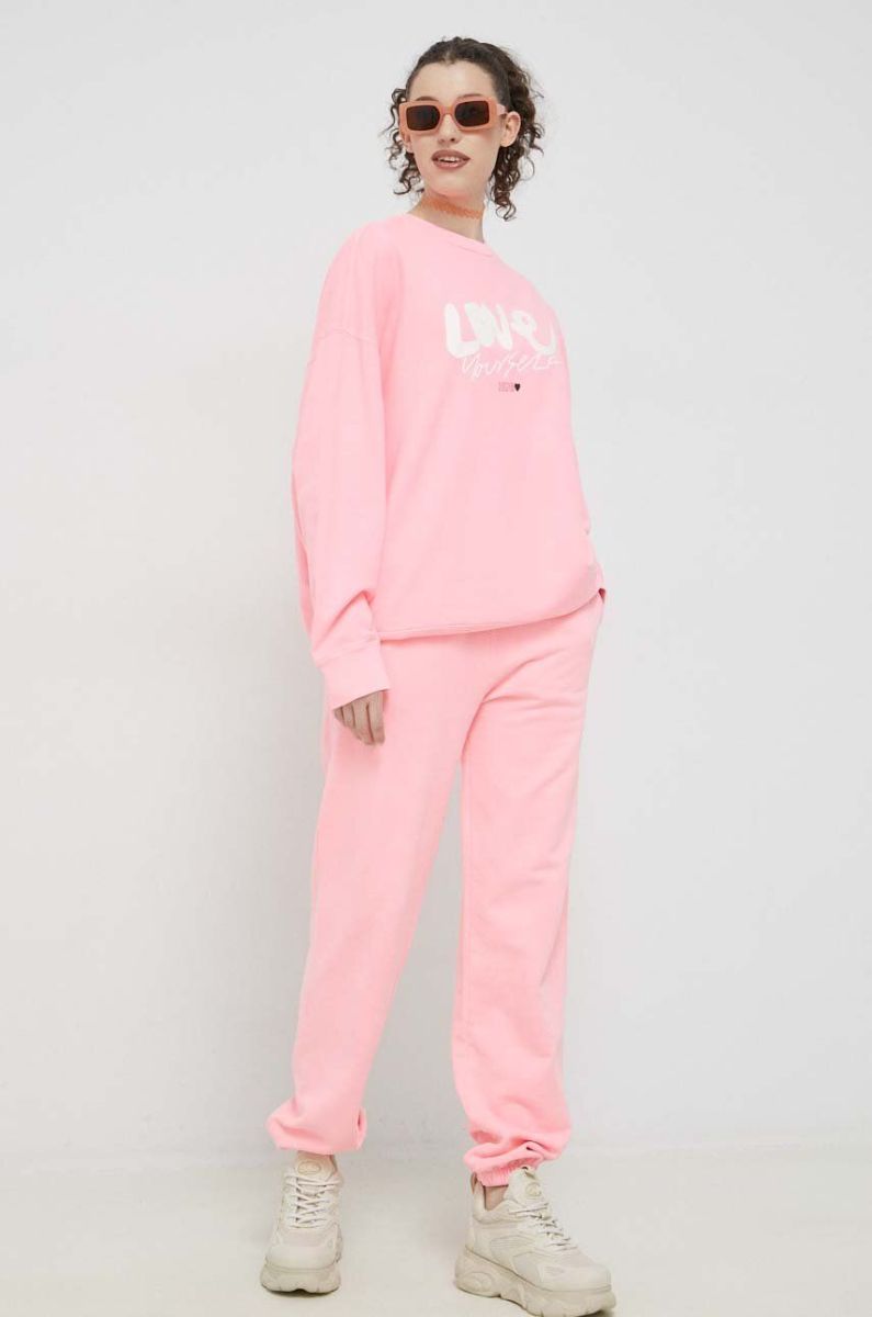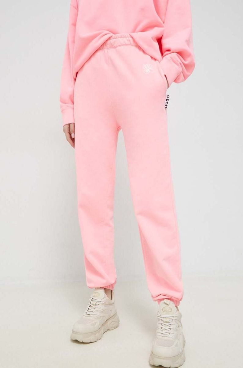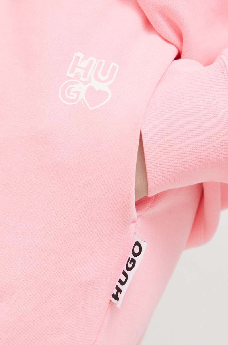 Бавовняні спортивні штани HUGO колір рожевий з принтом (3045838)
