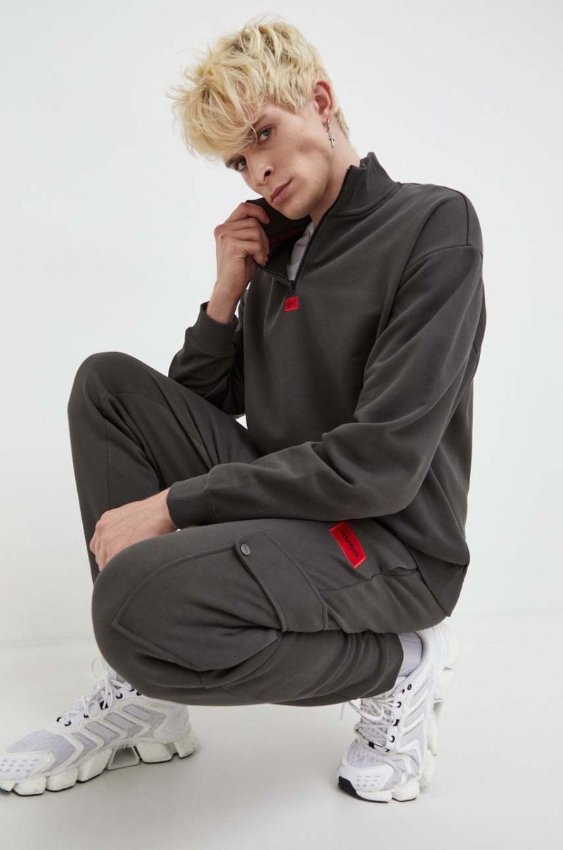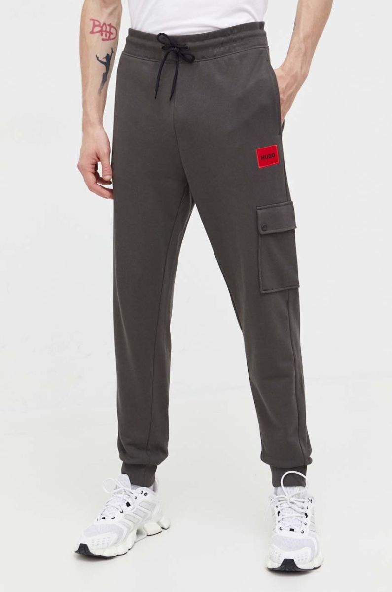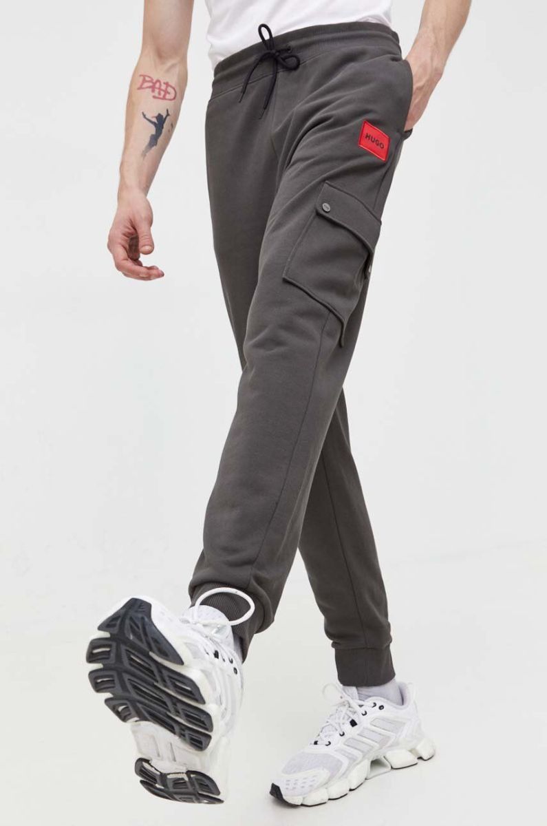Бавовняні спортивні штани HUGO колір сірий однотонні (3508174)