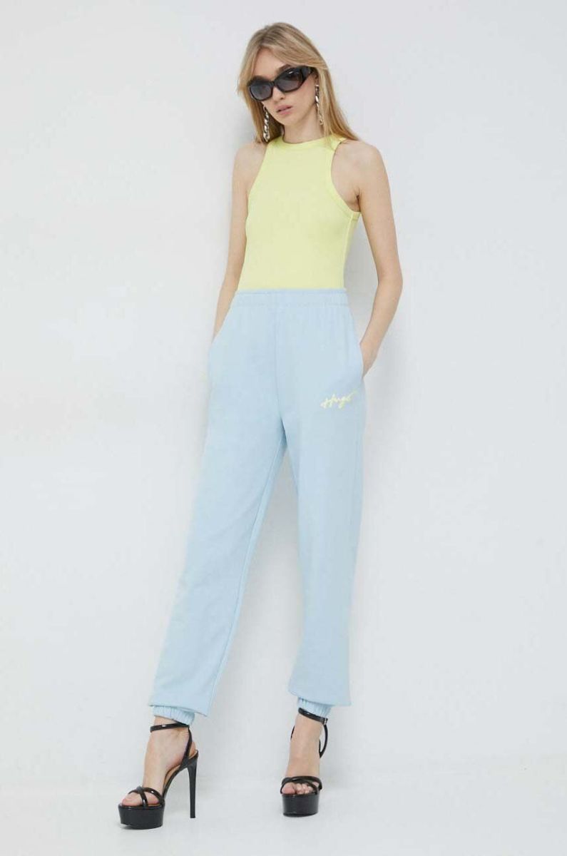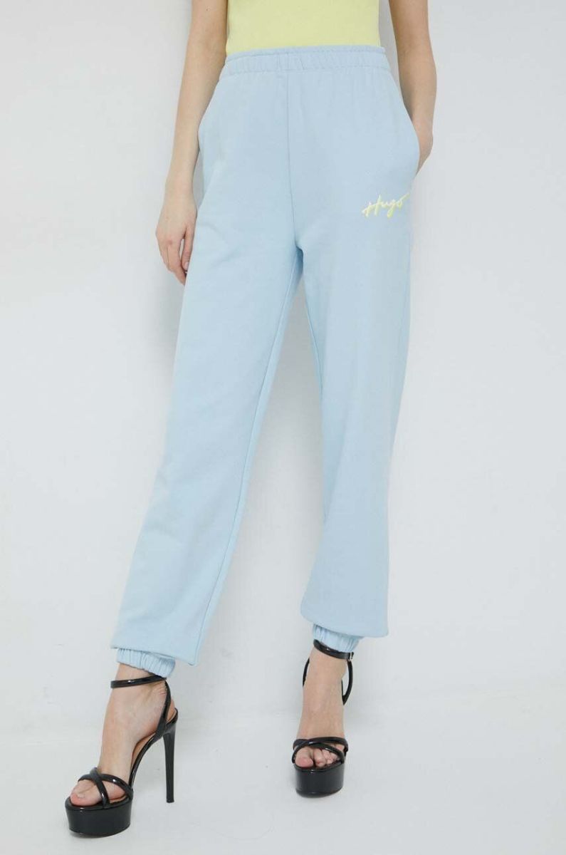 Бавовняні спортивні штани HUGO з принтом колір блакитний