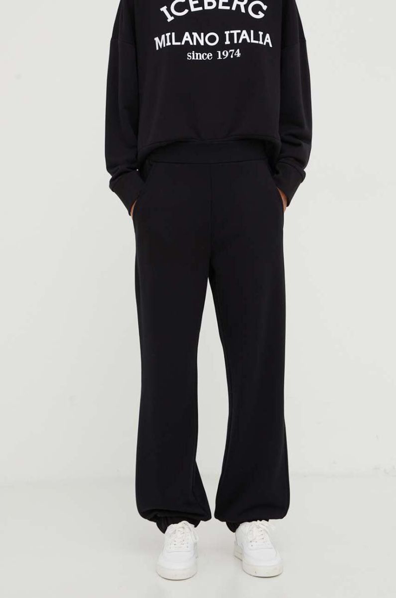 Бавовняні спортивні штани Iceberg колір чорний однотонні