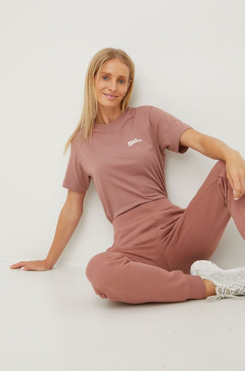 Бавовняні спортивні штани Jack Wolfskin жіночі колір рожевий однотонні (2576108)