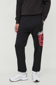 Бавовняні спортивні штани Just Cavalli колір чорний з принтом