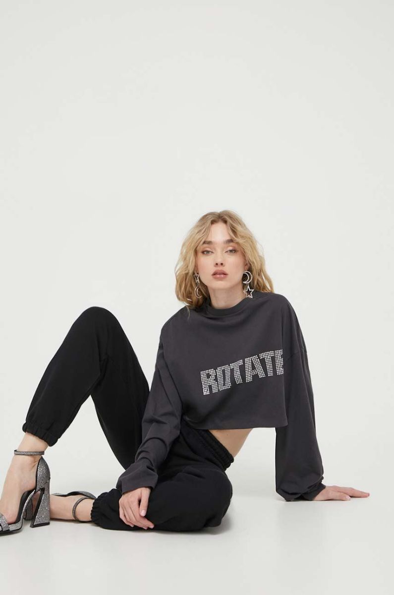 Бавовняні спортивні штани Rotate колір чорний з аплікацією
