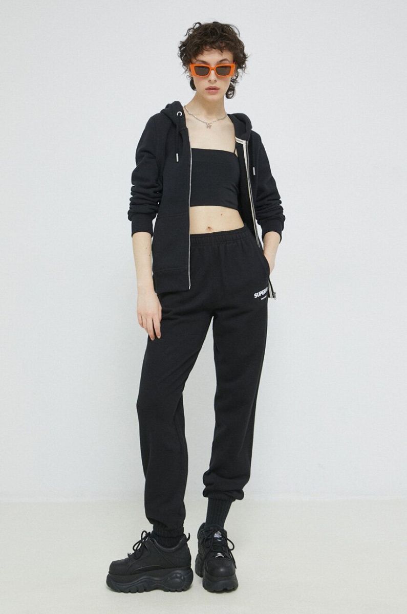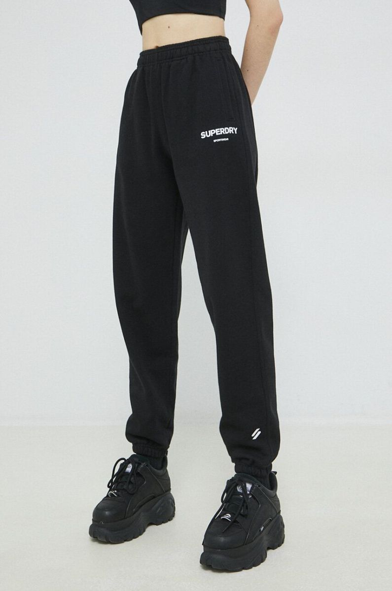 Бавовняні спортивні штани Superdry колір чорний з принтом (2988734)