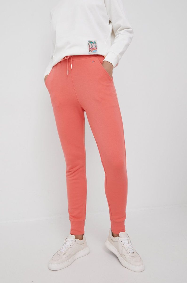 Бавовняні спортивні штани Tommy Hilfiger жіночі колір помаранчевий однотонні