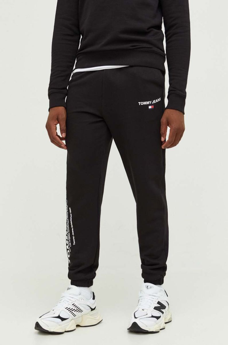 Бавовняні спортивні штани Tommy Jeans колір чорний з принтом (3421721)