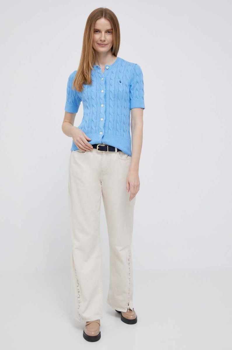 Бавовняний кардиган Polo Ralph Lauren легкий колір блакитний
