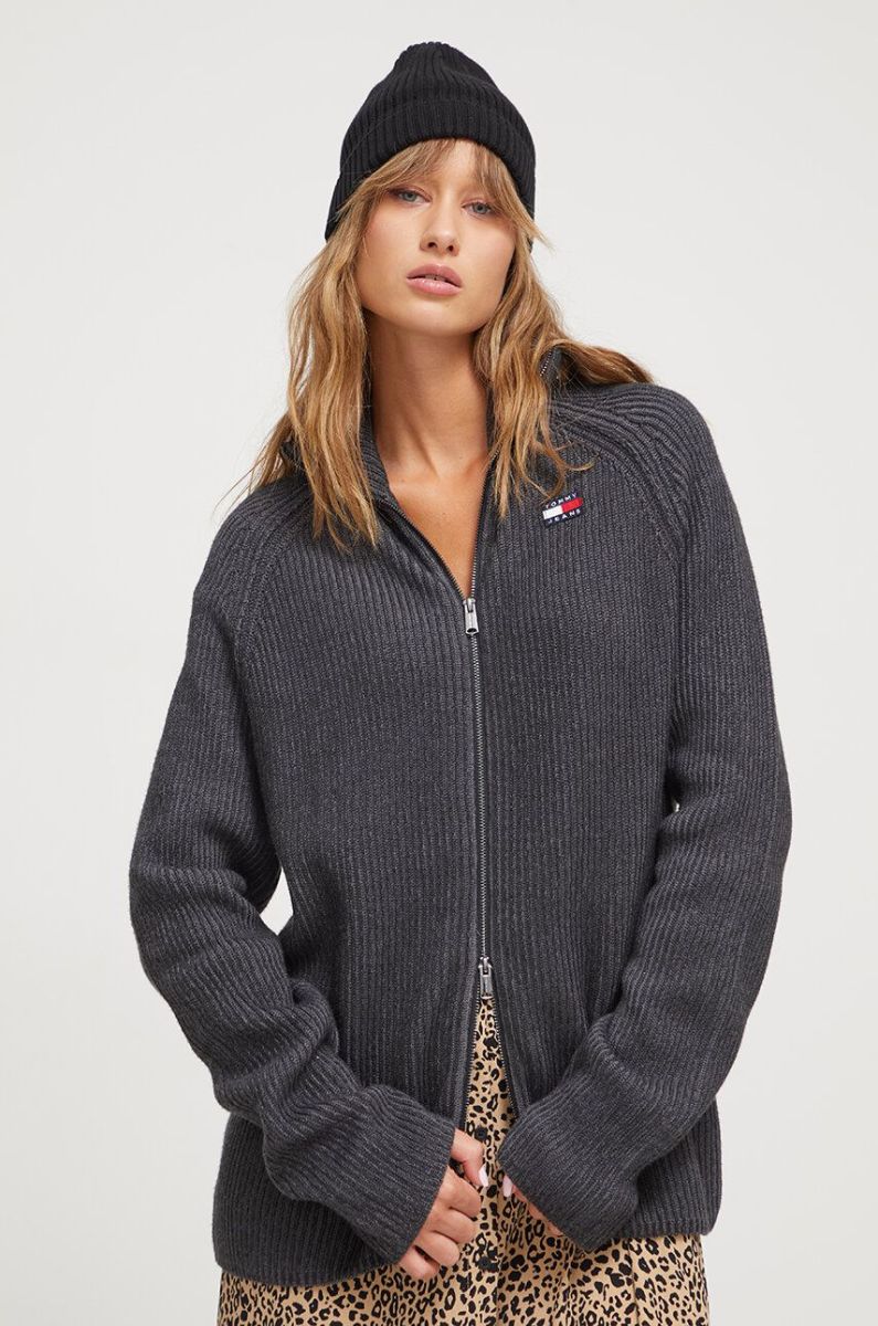 Бавовняний кардиган Tommy Jeans колір сірий