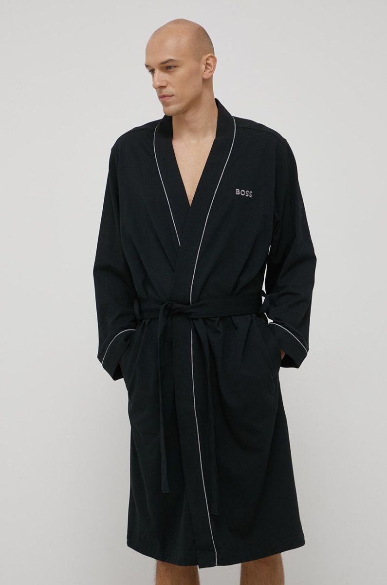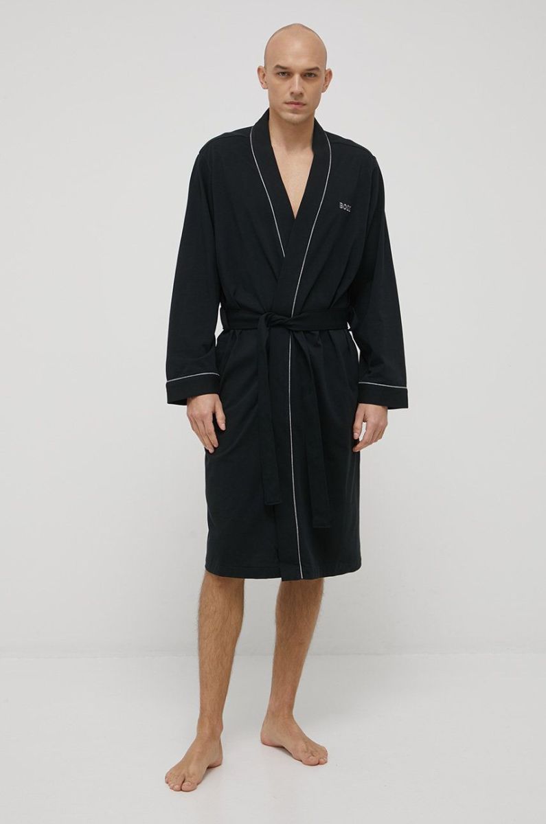 Бавовняний халат BOSS колір чорний (2188201)