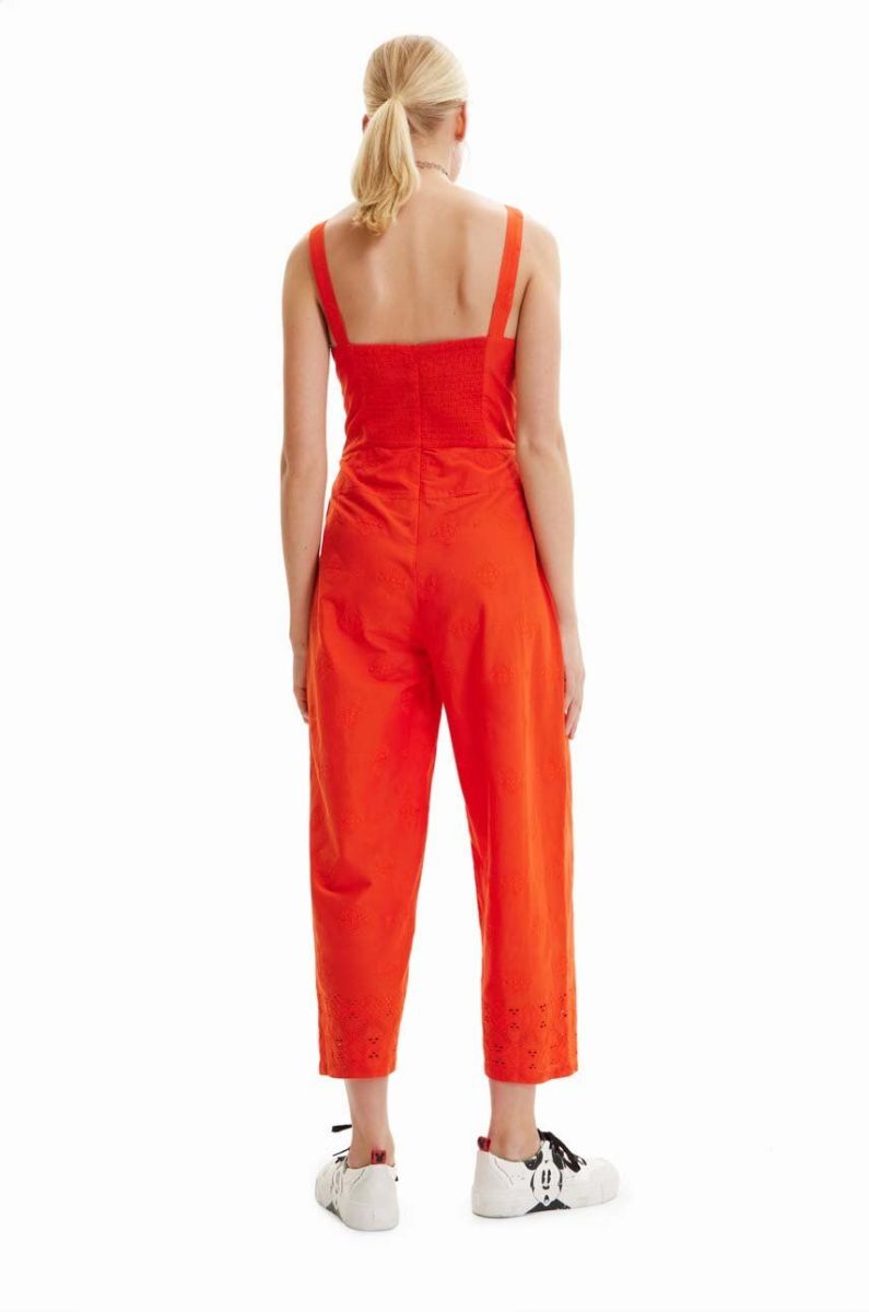Бавовняний комбінезон Desigual колір червоний з бавовни декольте трикутник