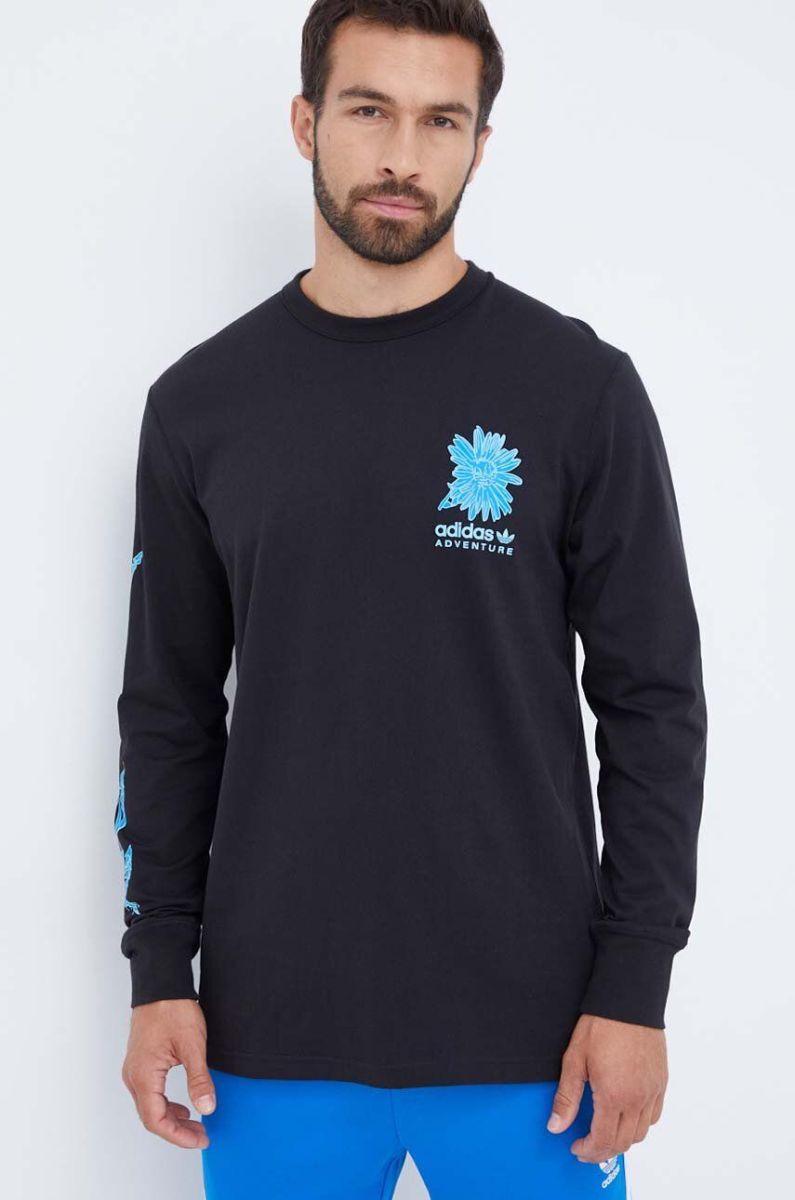 Бавовняний лонгслів adidas Originals колір чорний з принтом (3506942)