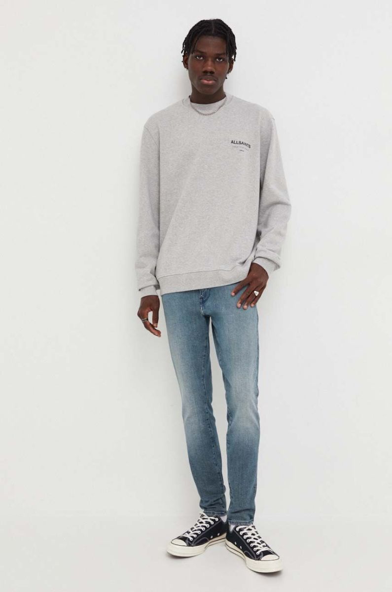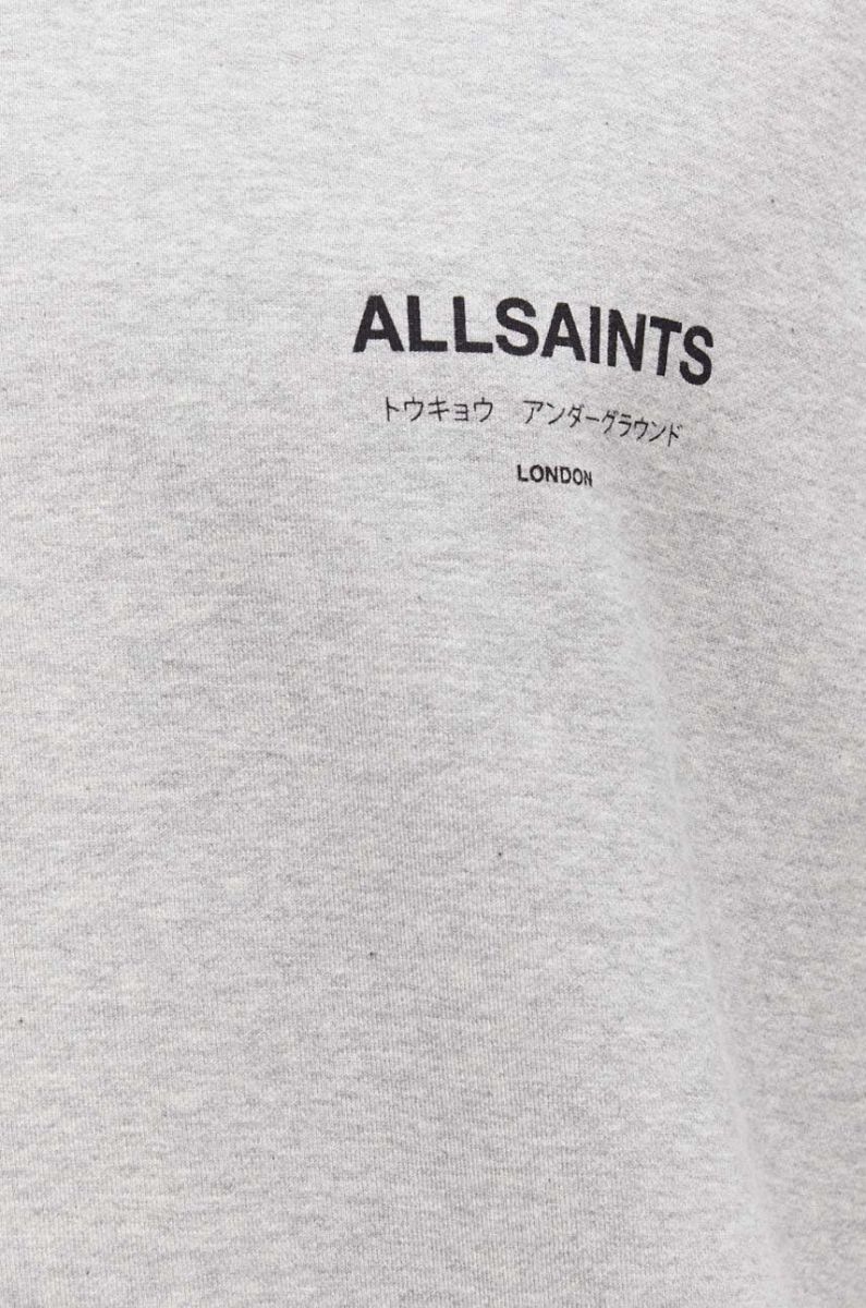 Бавовняний лонгслів AllSaints колір сірий з принтом