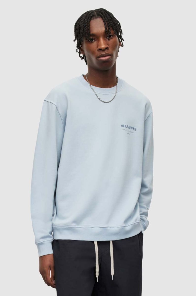Бавовняний лонгслів AllSaints з принтом колір блакитний (3517723)