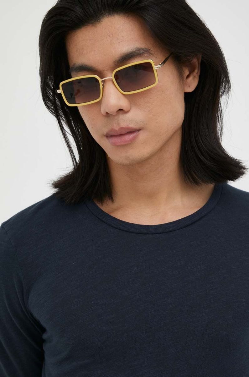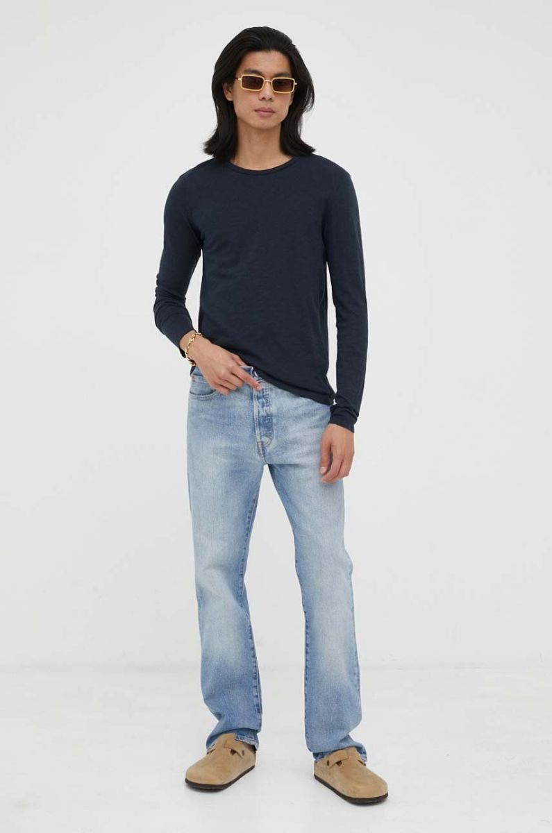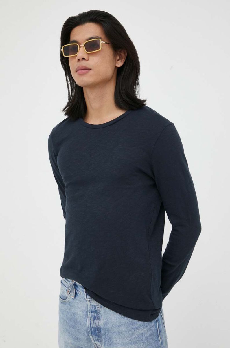 Бавовняний лонгслів American Vintage колір синій однотонний