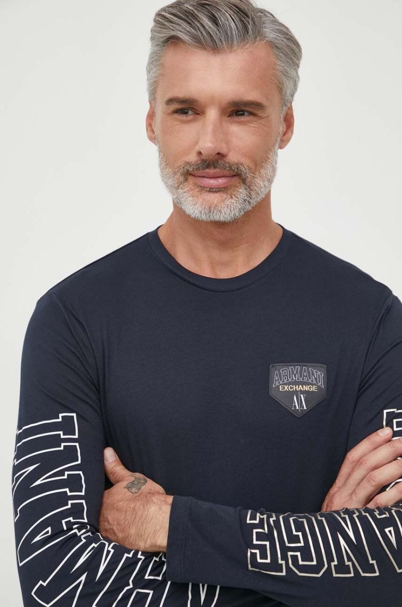 Бавовняний лонгслів Armani Exchange колір синій з принтом