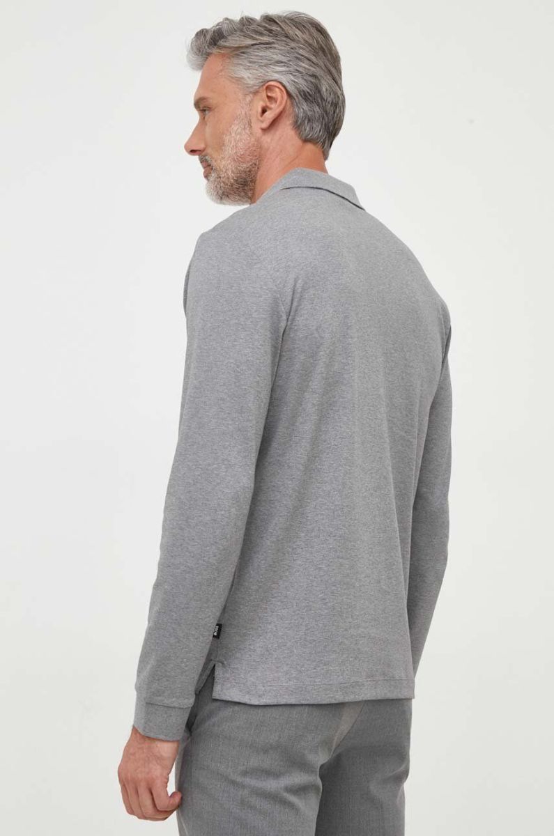 Бавовняний лонгслів BOSS колір сірий однотонний (3423420)