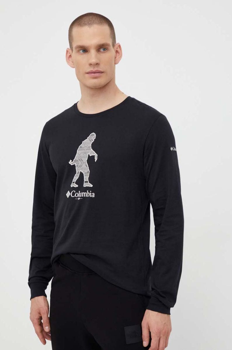Бавовняний лонгслів Columbia колір чорний з принтом