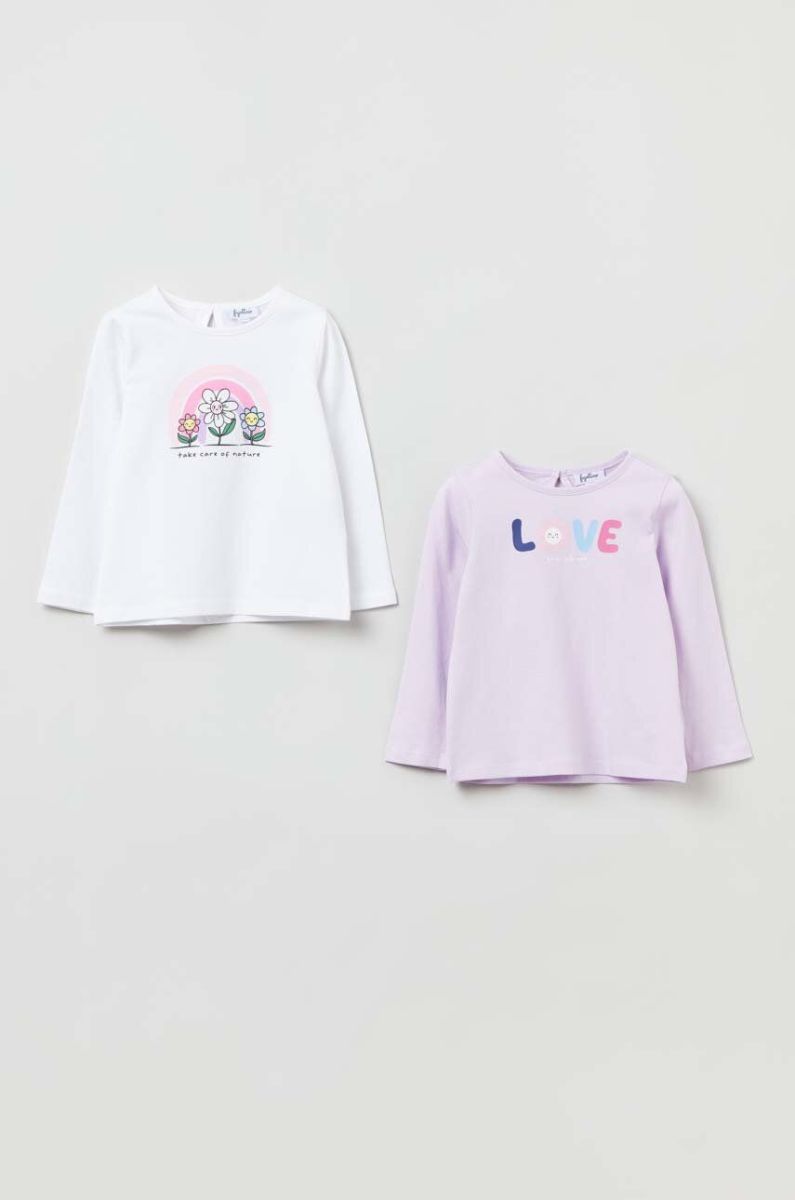 Бавовняний лонгслів для немовлят OVS 2-pack колір фіолетовий