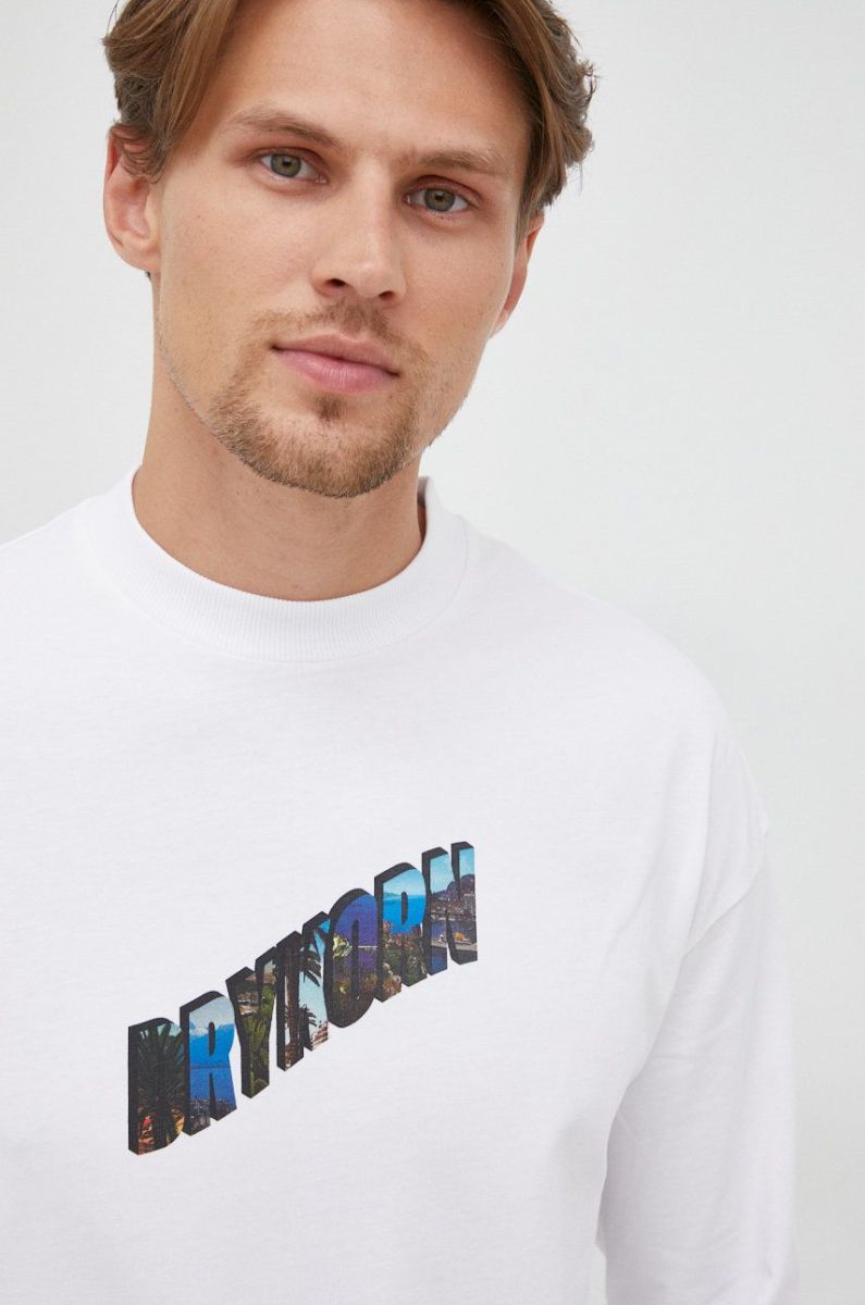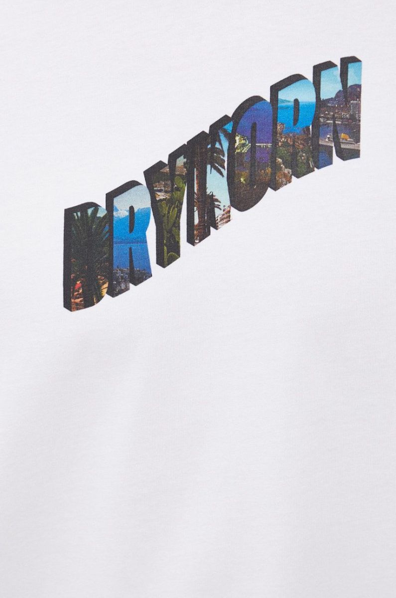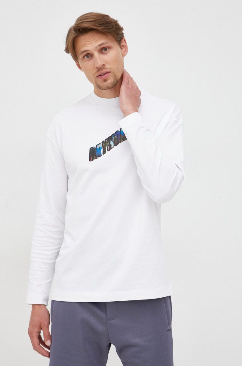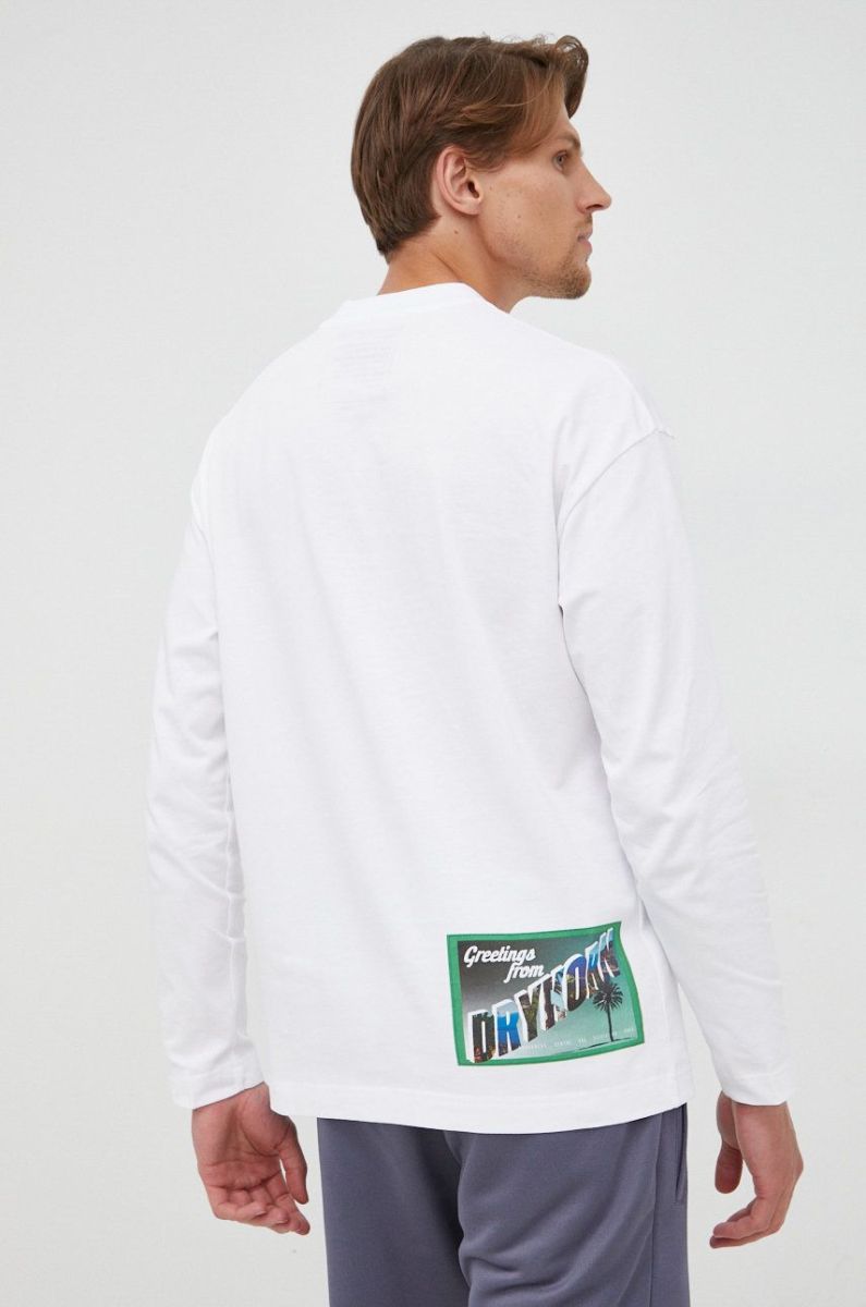 Бавовняний лонгслів Drykorn колір білий з принтом