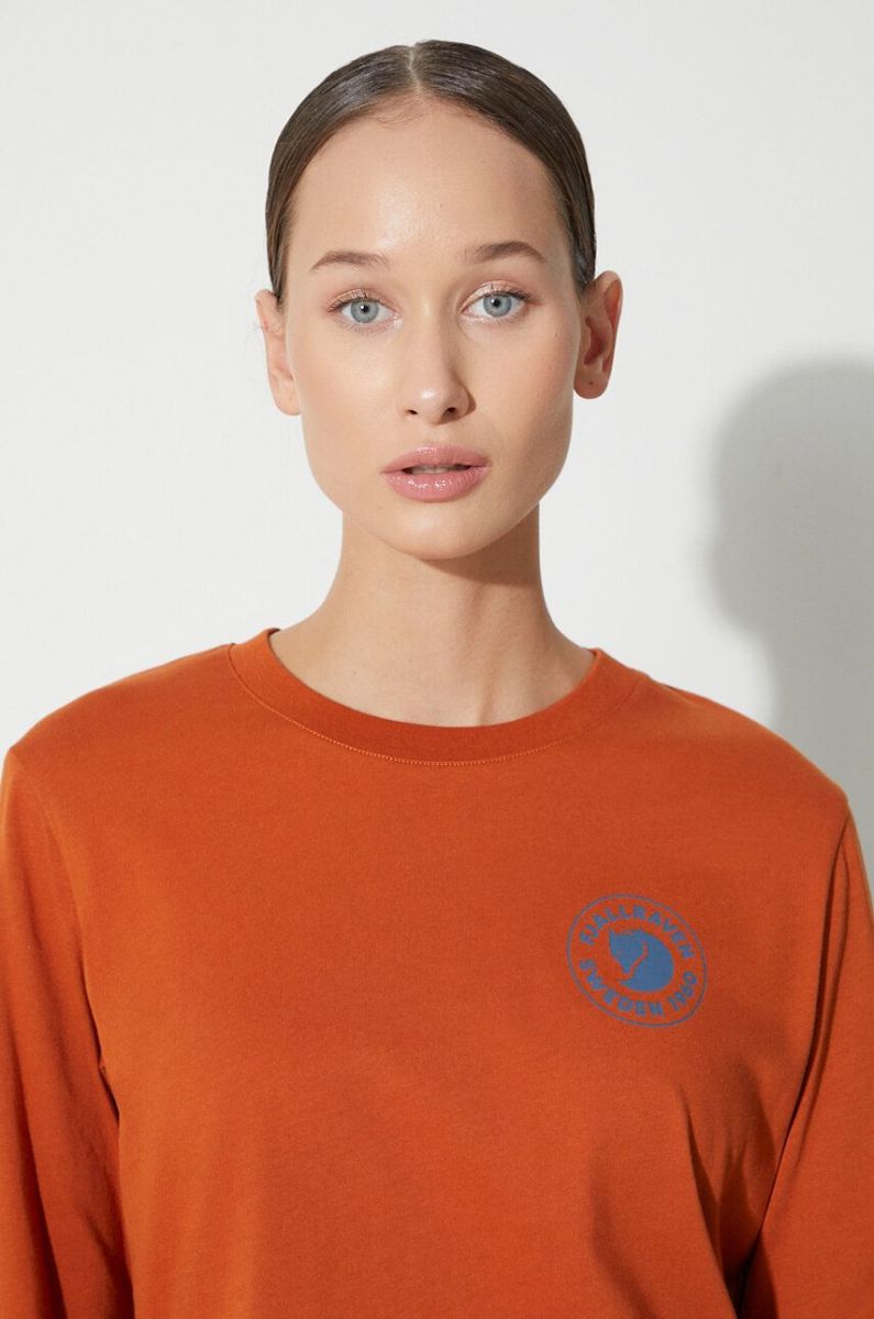 Бавовняний лонгслів Fjallraven 1960 Logo колір помаранчевий