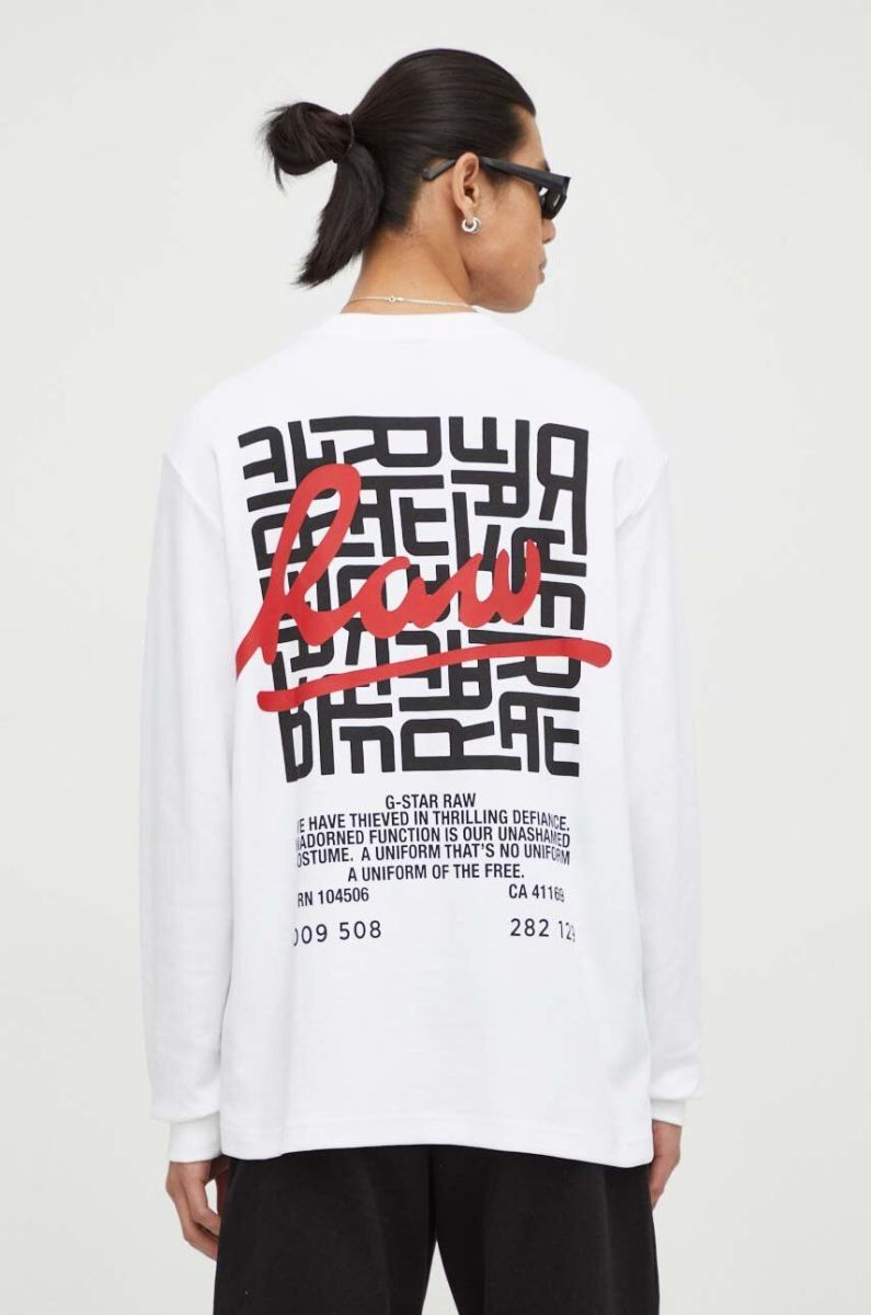 Бавовняний лонгслів G-Star Raw колір білий візерунок