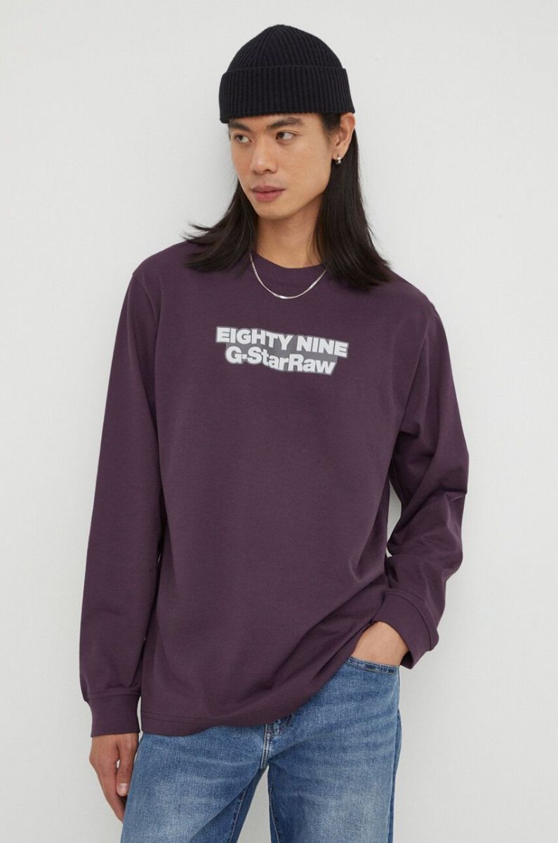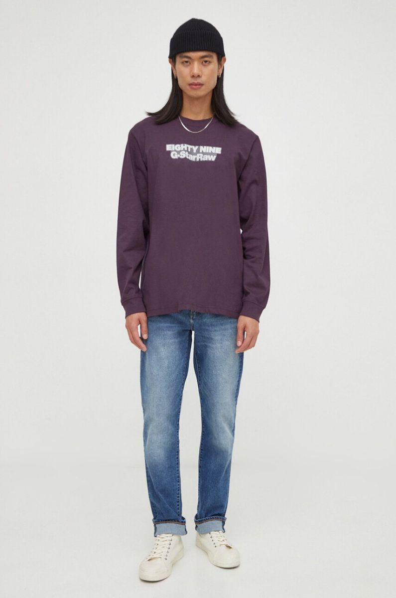 Бавовняний лонгслів G-Star Raw колір фіолетовий з принтом