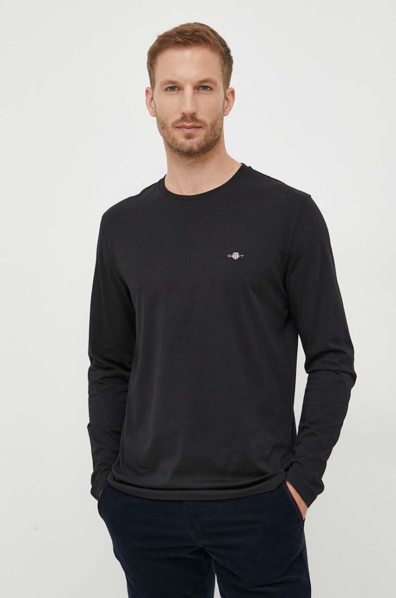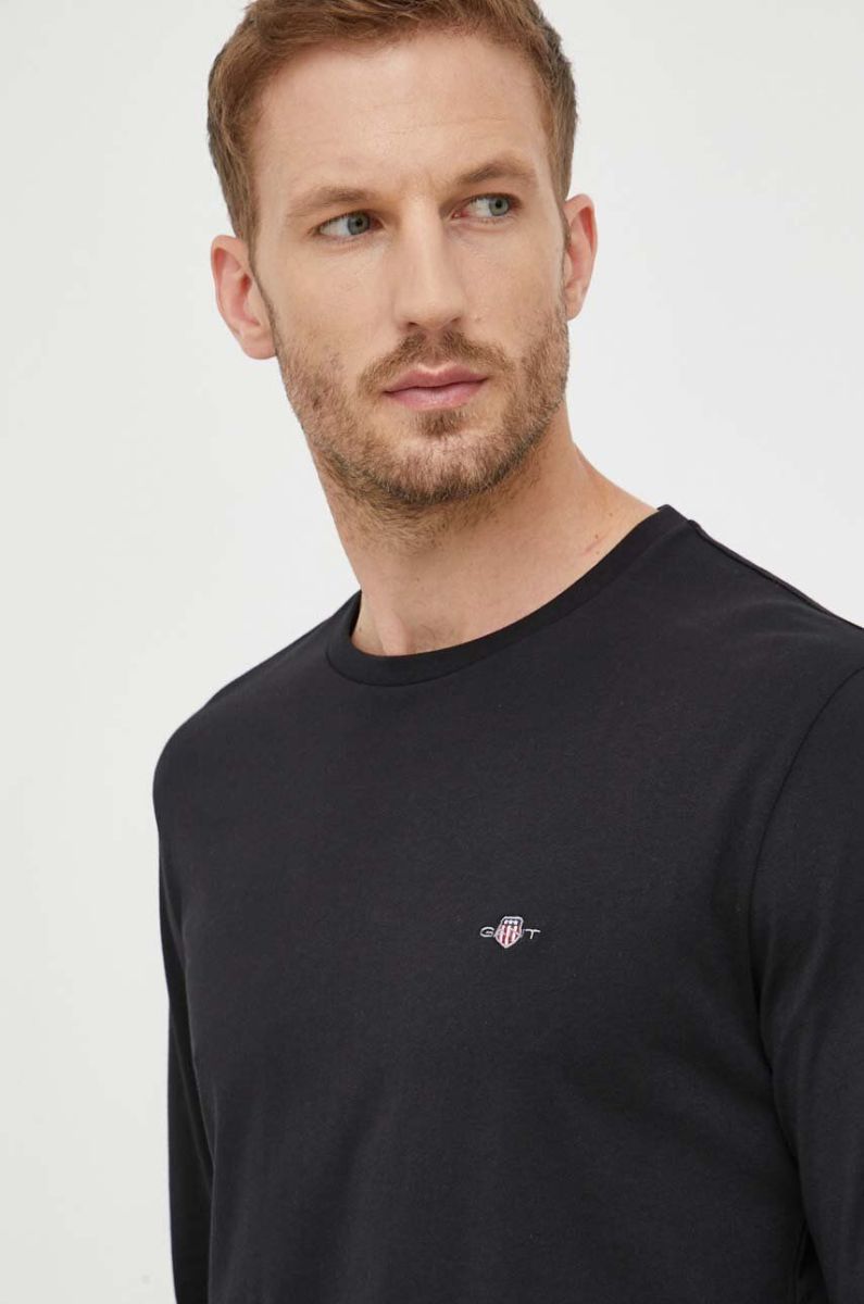 Бавовняний лонгслів Gant колір чорний однотонний (3543472)
