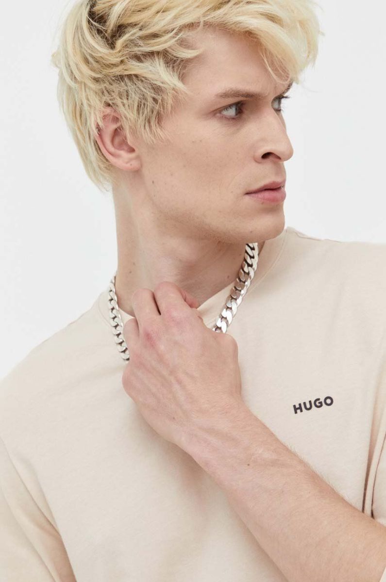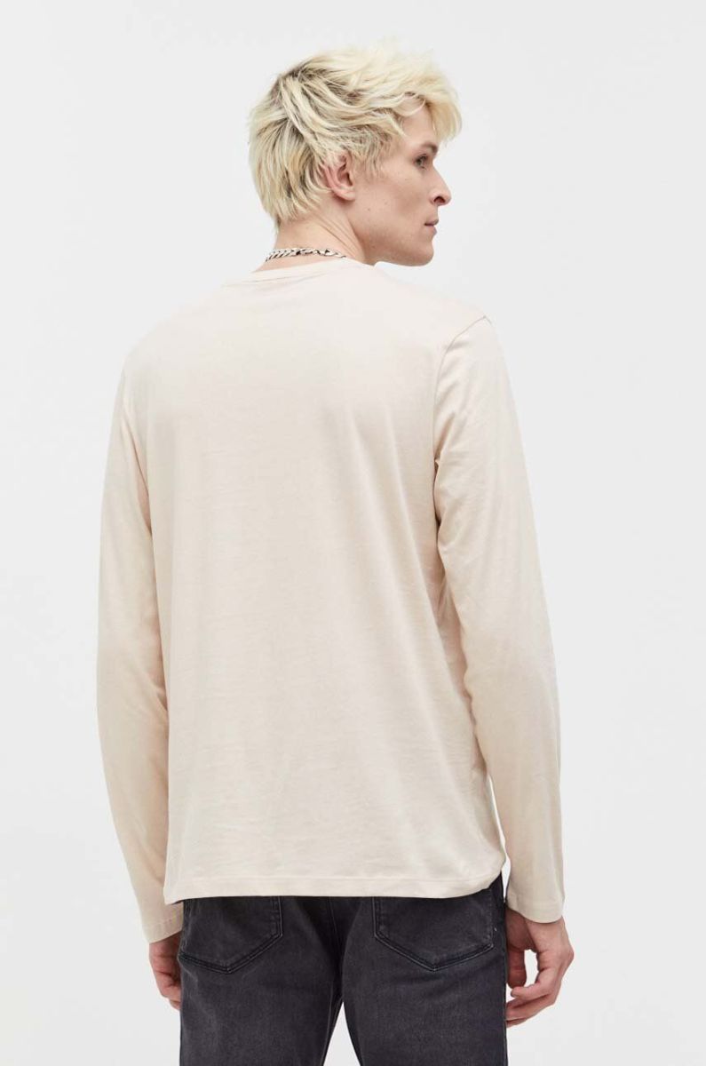 Бавовняний лонгслів HUGO колір бежевий однотонний