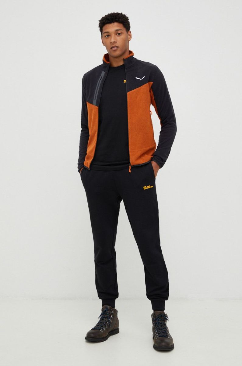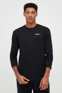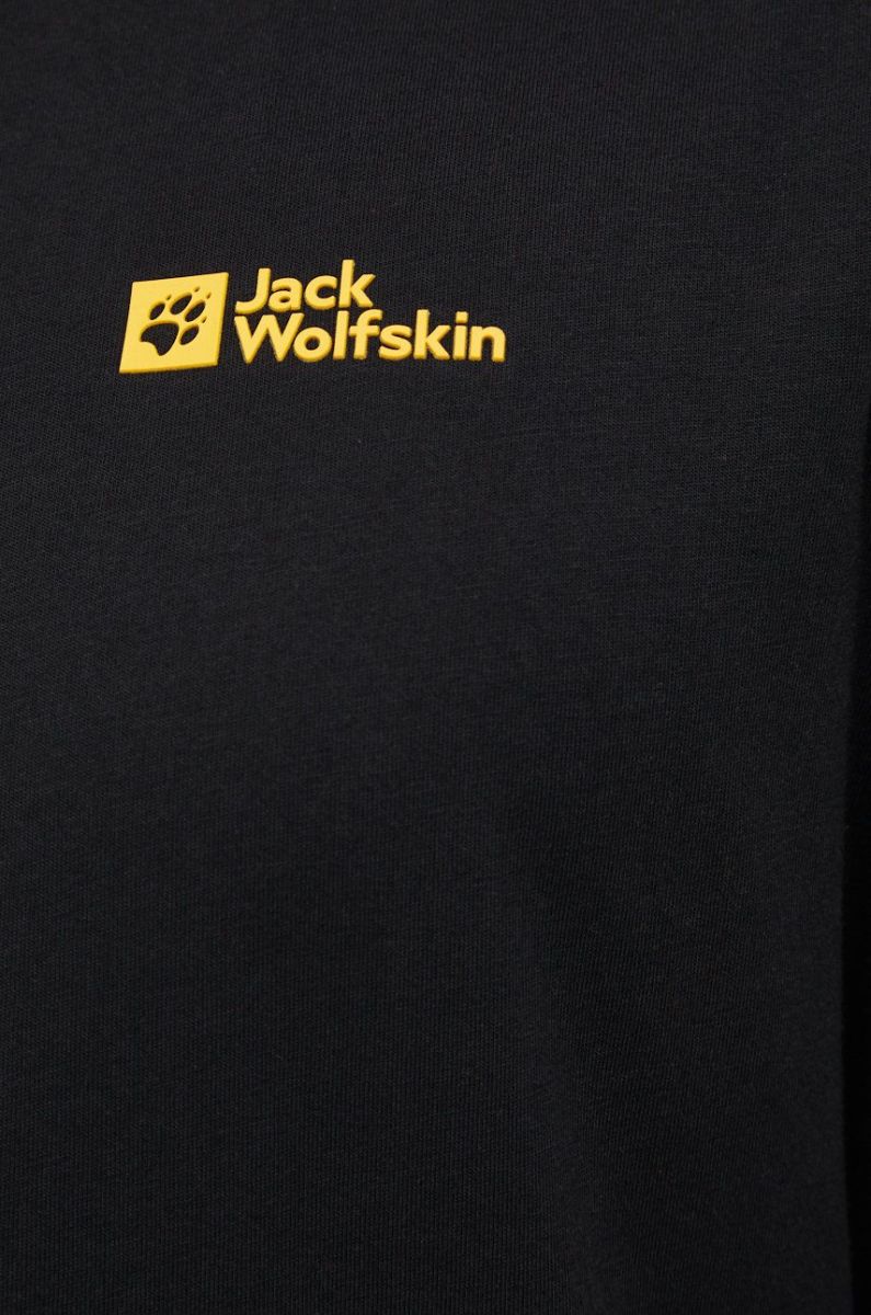Бавовняний лонгслів Jack Wolfskin Essential колір чорний однотонний