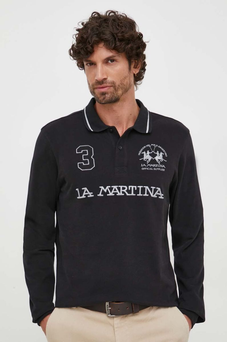 Бавовняний лонгслів La Martina колір чорний з аплікацією (3633249)