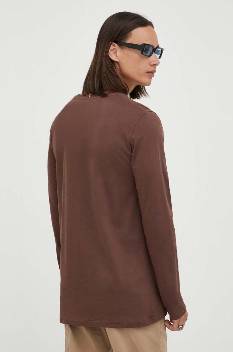Бавовняний лонгслів Les Deux колір коричневий однотонний