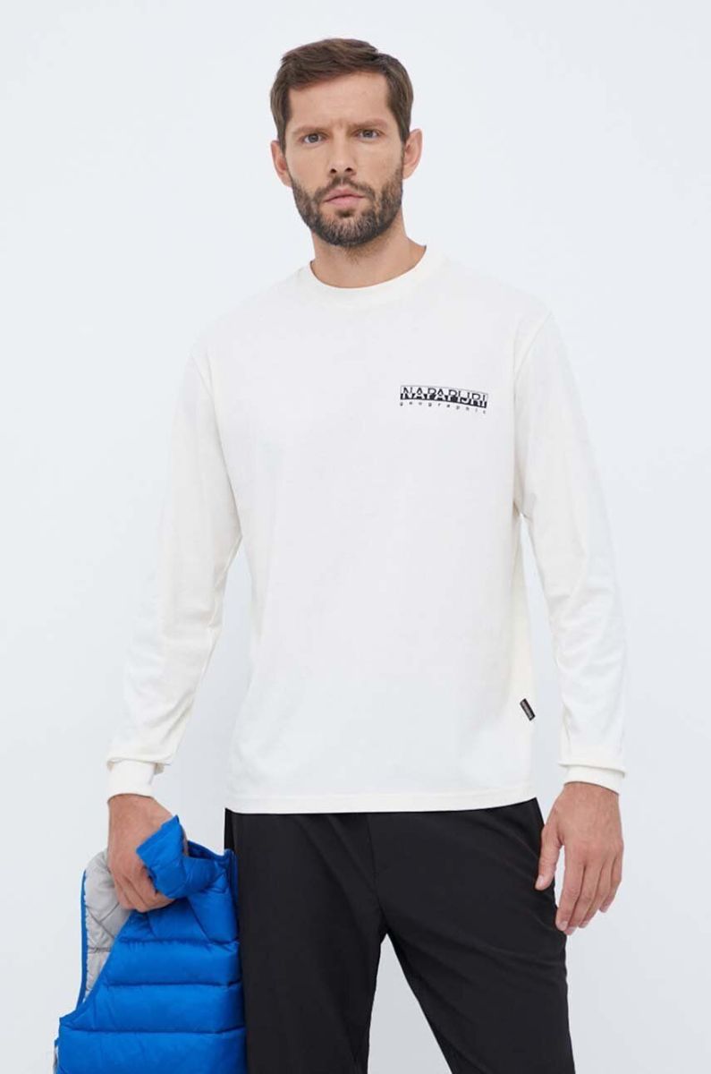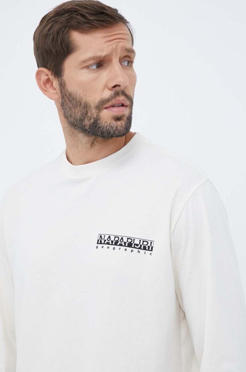 Бавовняний лонгслів Napapijri колір бежевий однотонний