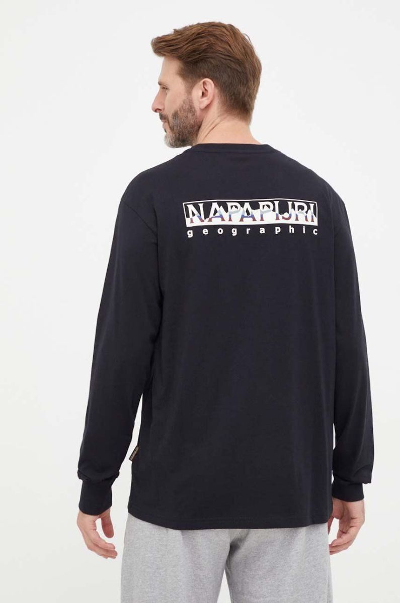 Бавовняний лонгслів Napapijri колір чорний однотонний