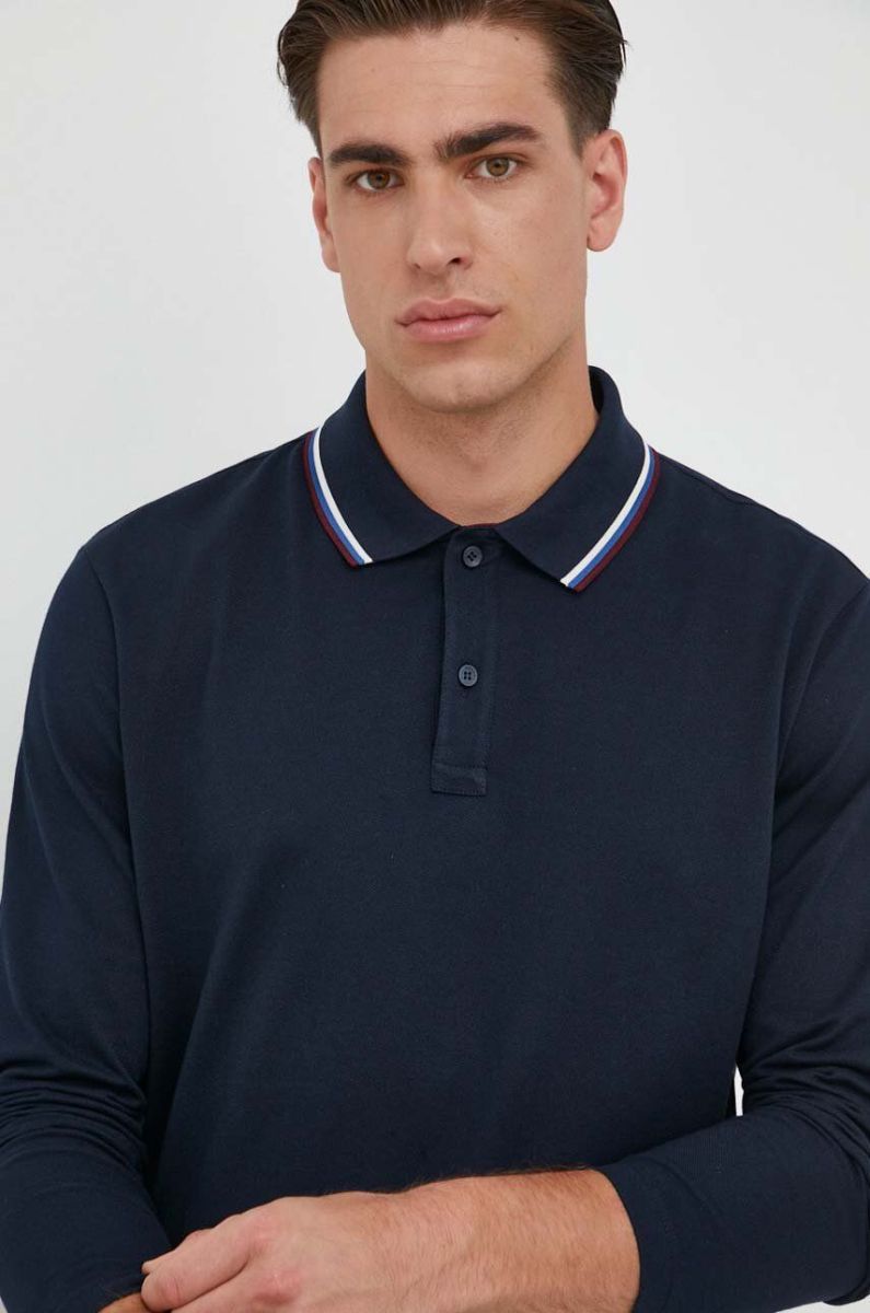 Бавовняний лонгслів Paul&Shark колір синій однотонний