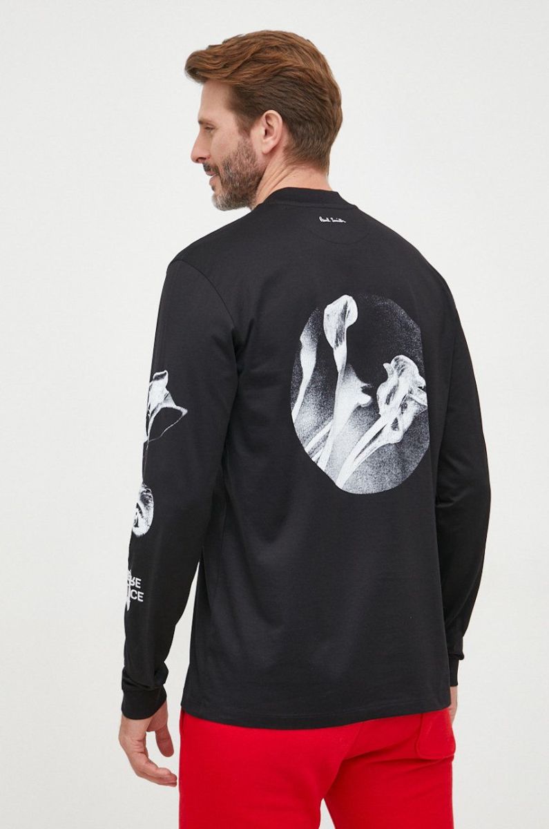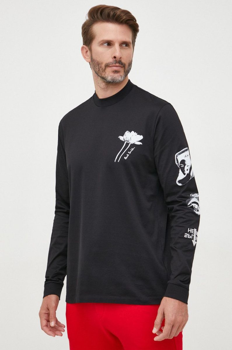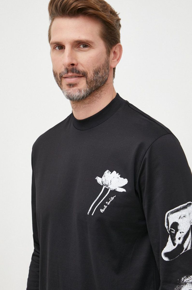Бавовняний лонгслів Paul Smith колір чорний з принтом