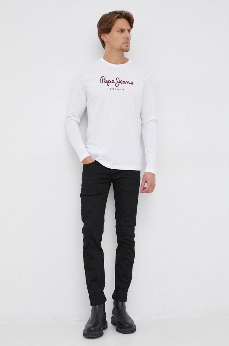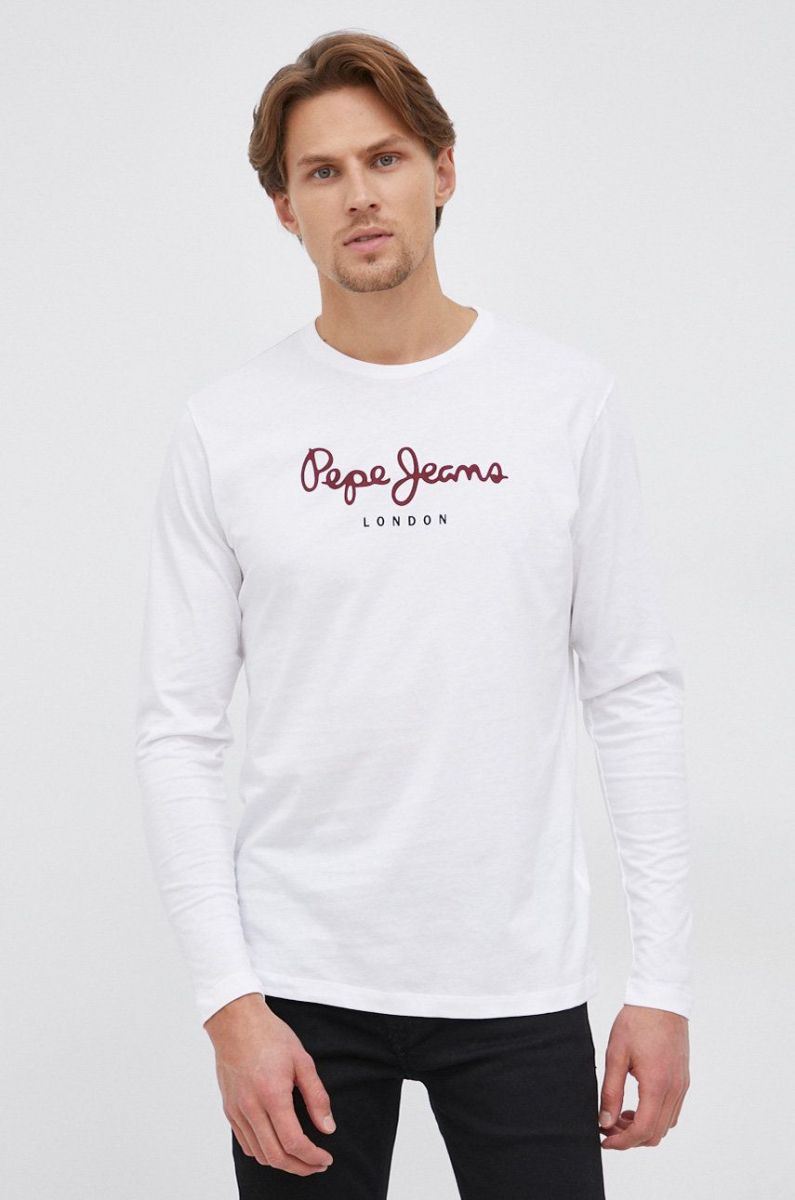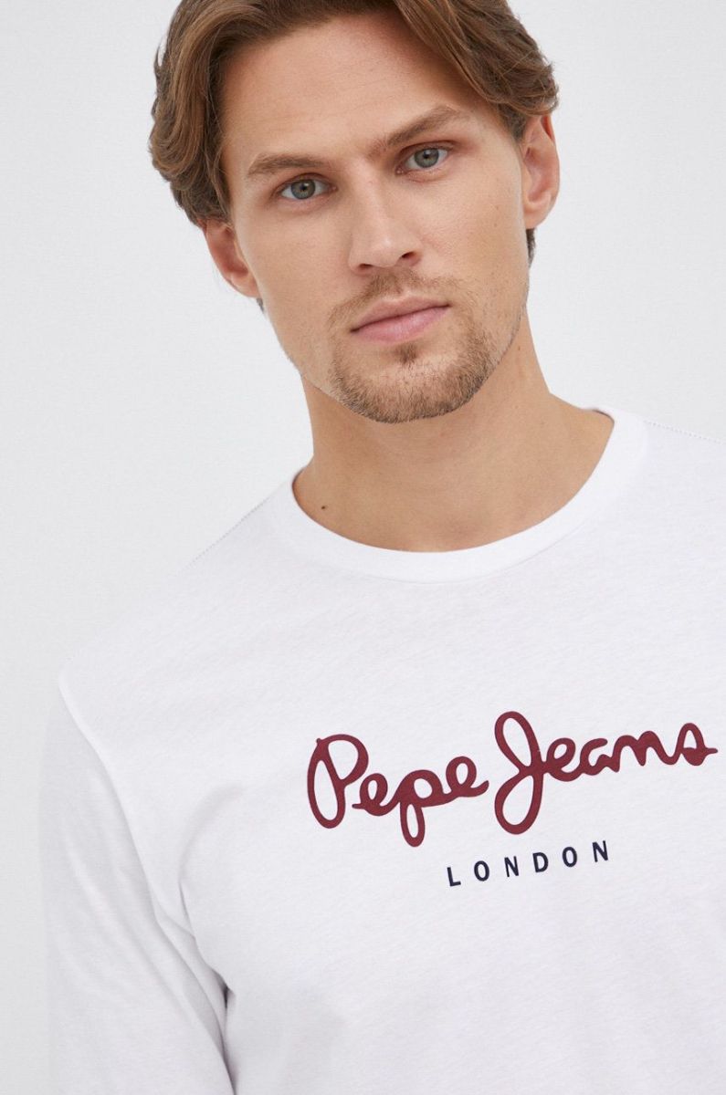 Бавовняний лонгслів Pepe Jeans Eggo Long колір білий з принтом