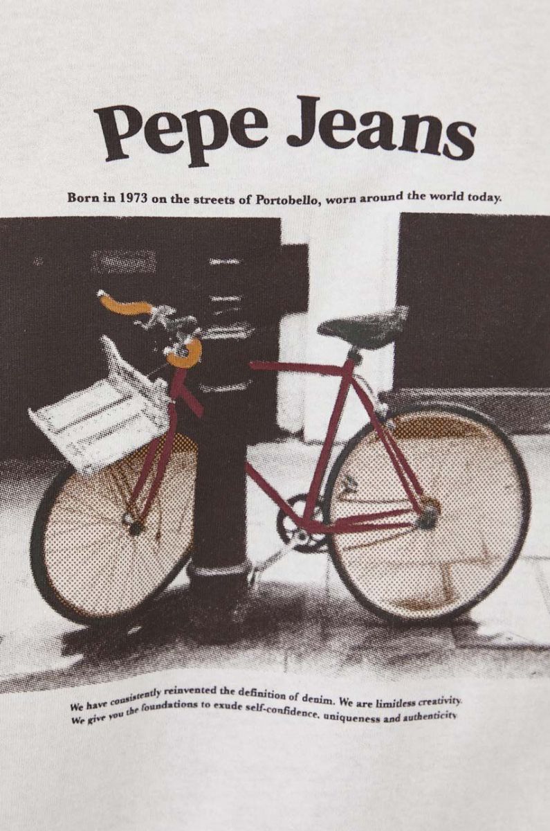 Бавовняний лонгслів Pepe Jeans Kenzie колір бежевий з принтом