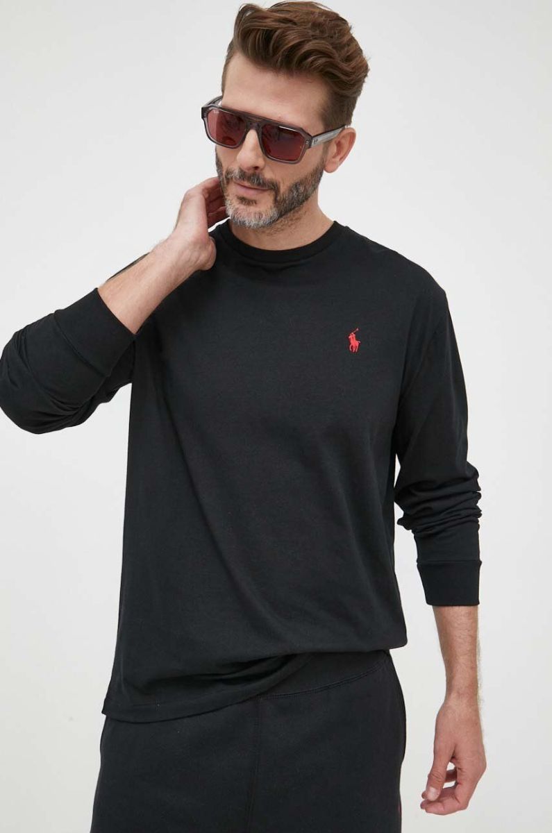 Бавовняний лонгслів Polo Ralph Lauren колір чорний однотонний (3274269)