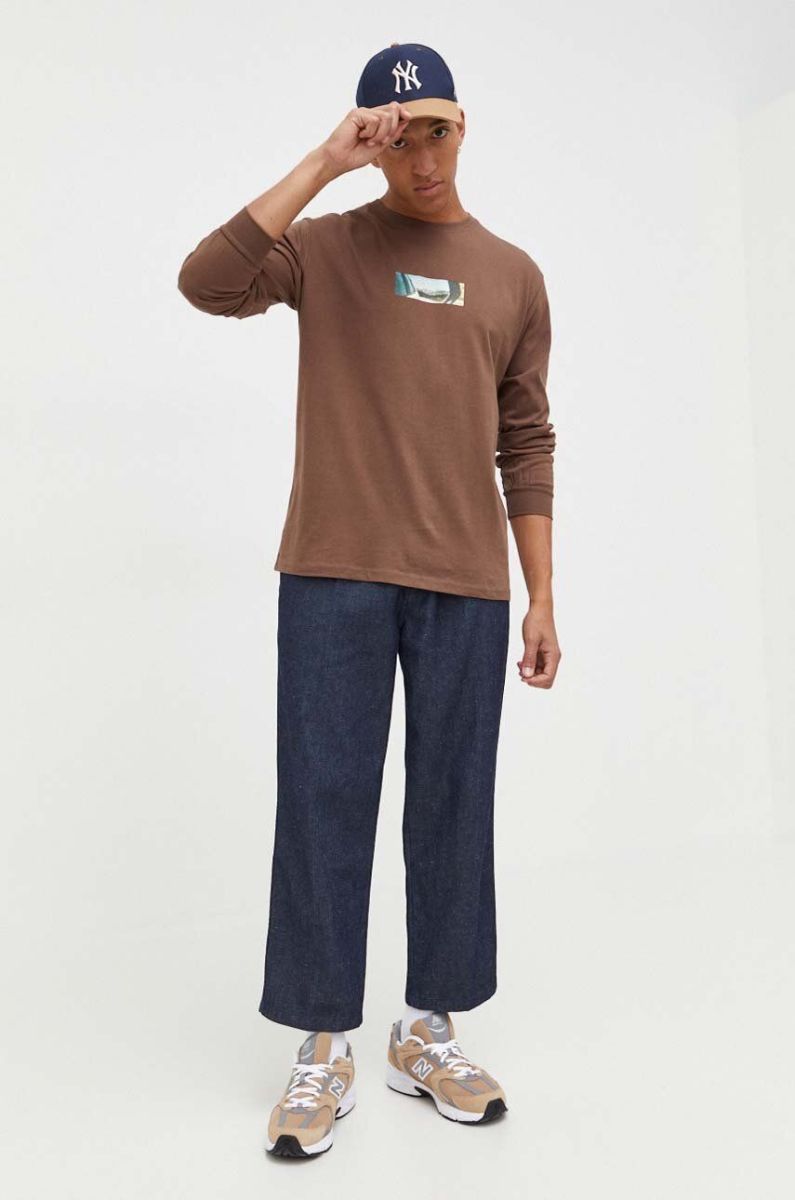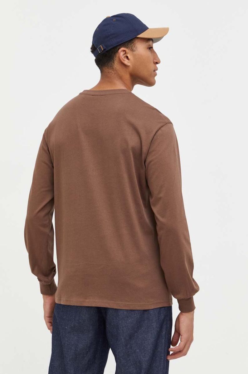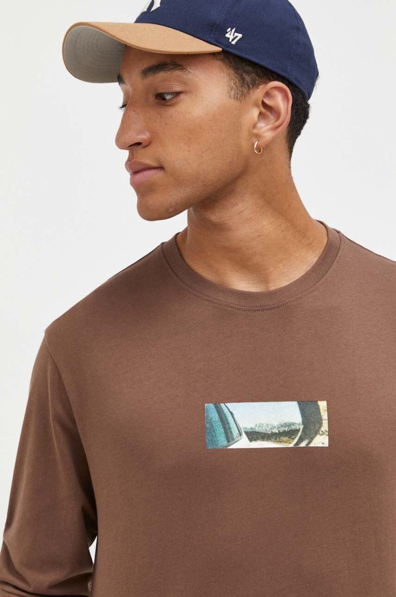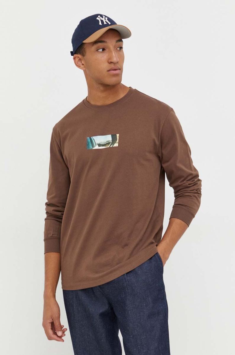 Бавовняний лонгслів Solid колір коричневий з принтом