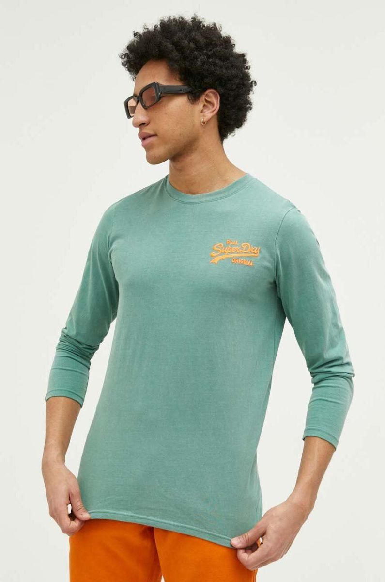 Бавовняний лонгслів Superdry колір зелений з аплікацією (3175563)