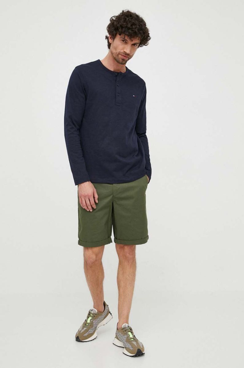 Бавовняний лонгслів Tommy Hilfiger колір синій однотонний