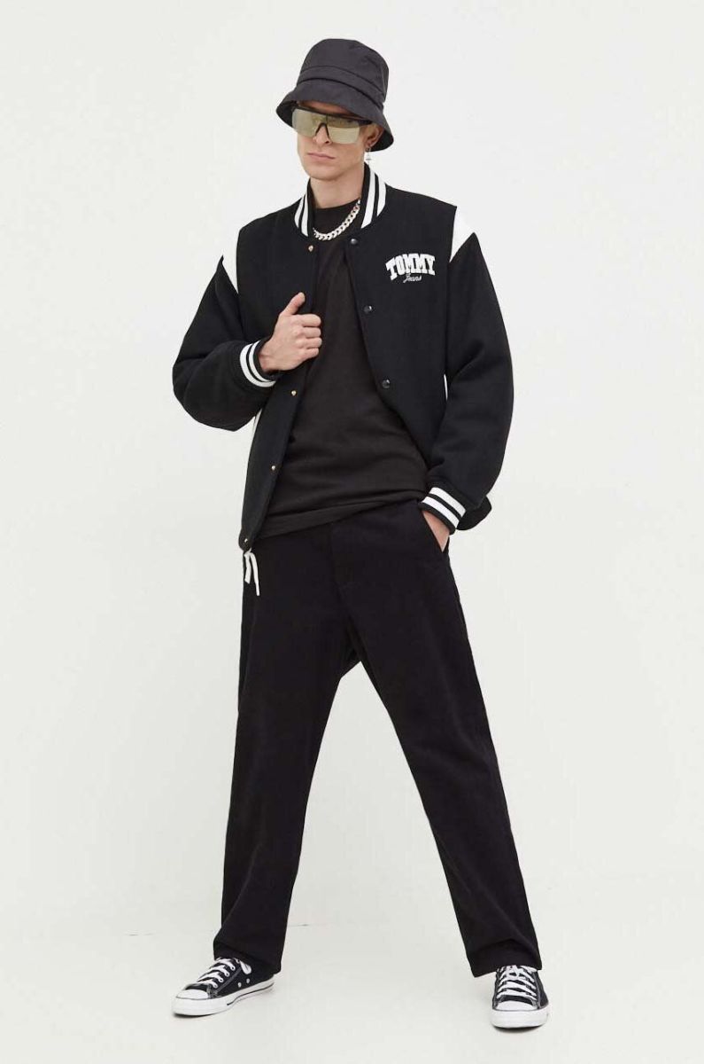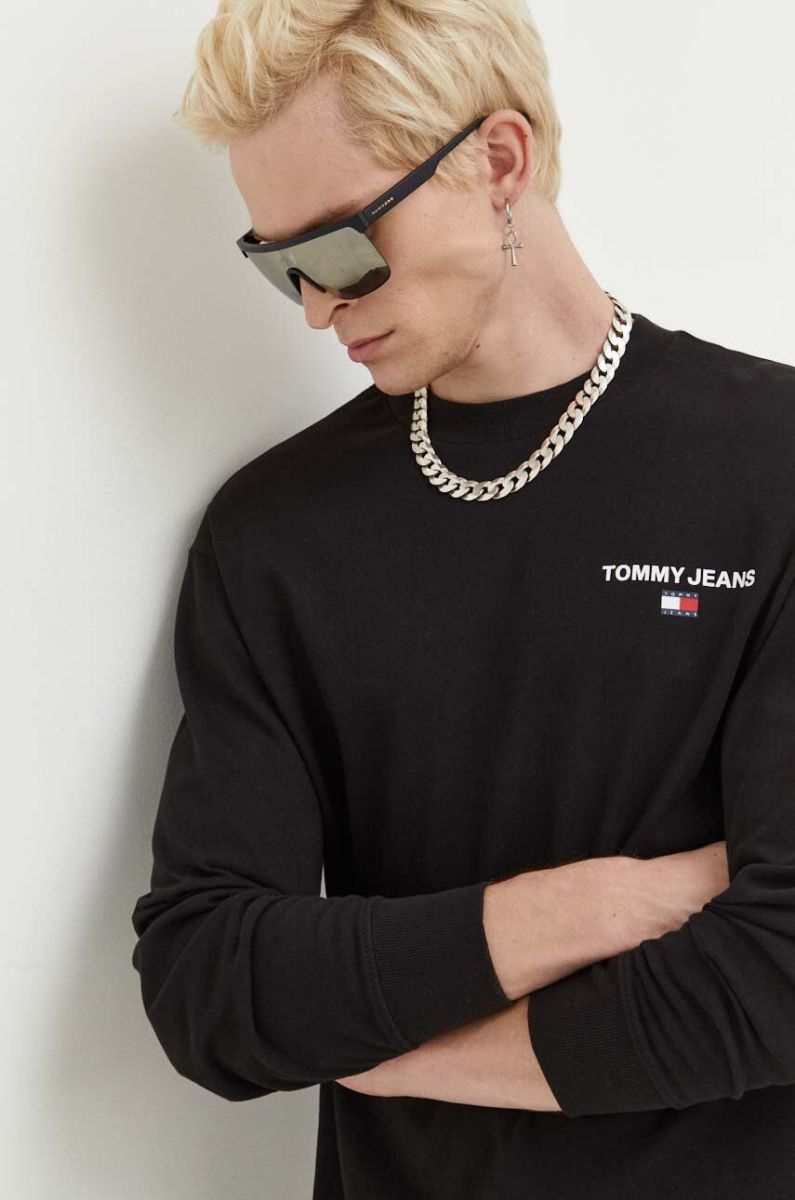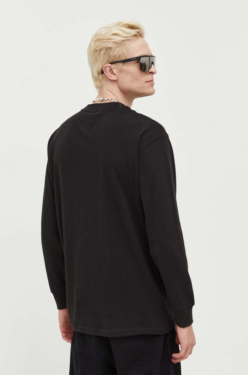 Бавовняний лонгслів Tommy Jeans колір чорний однотонний (3559514)