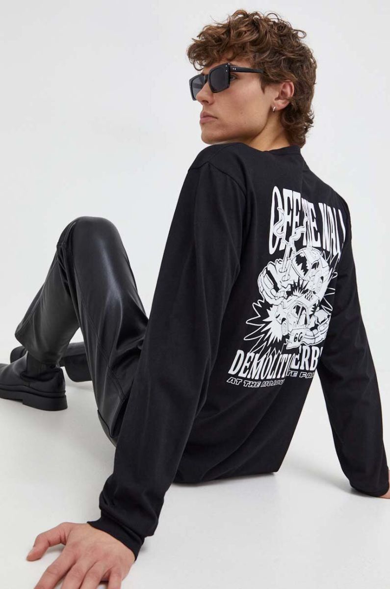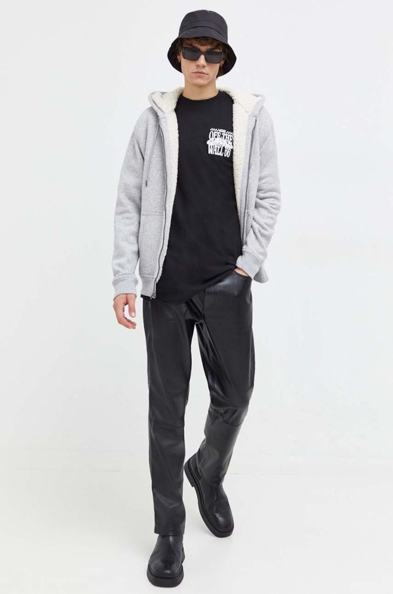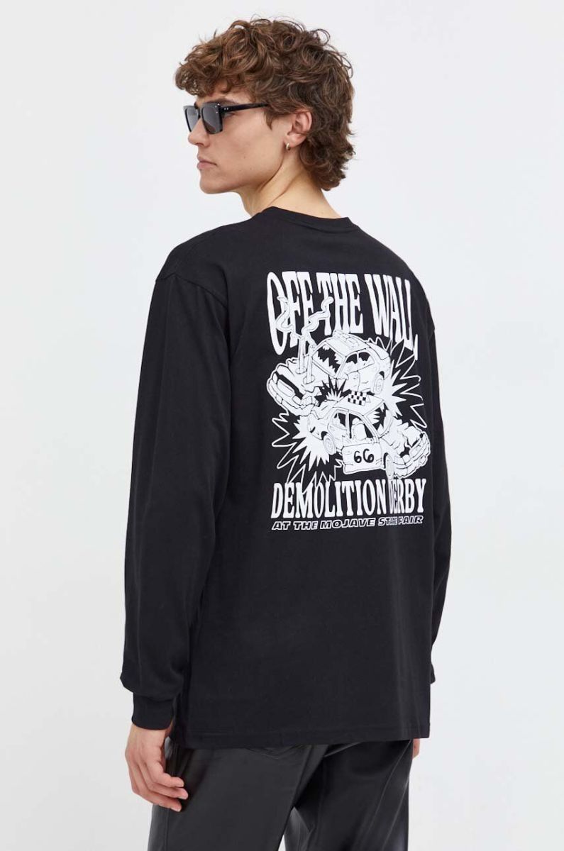 Бавовняний лонгслів Vans колір чорний з принтом (3689299)