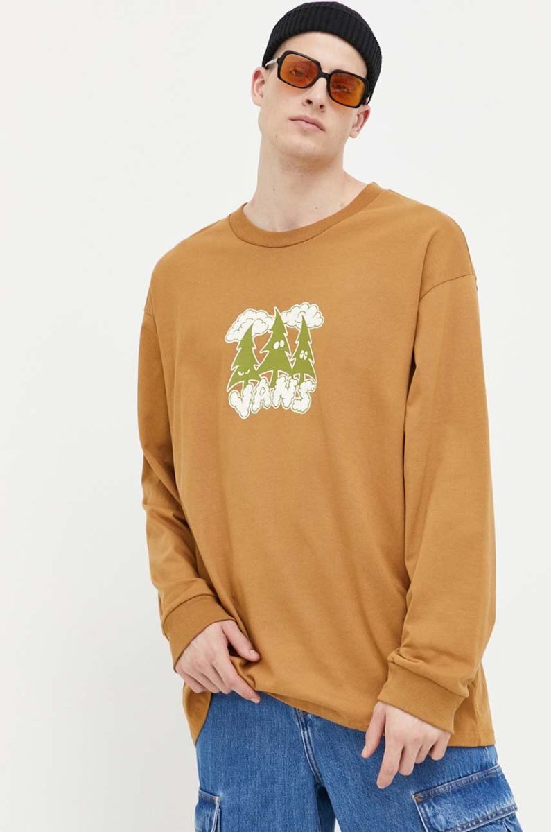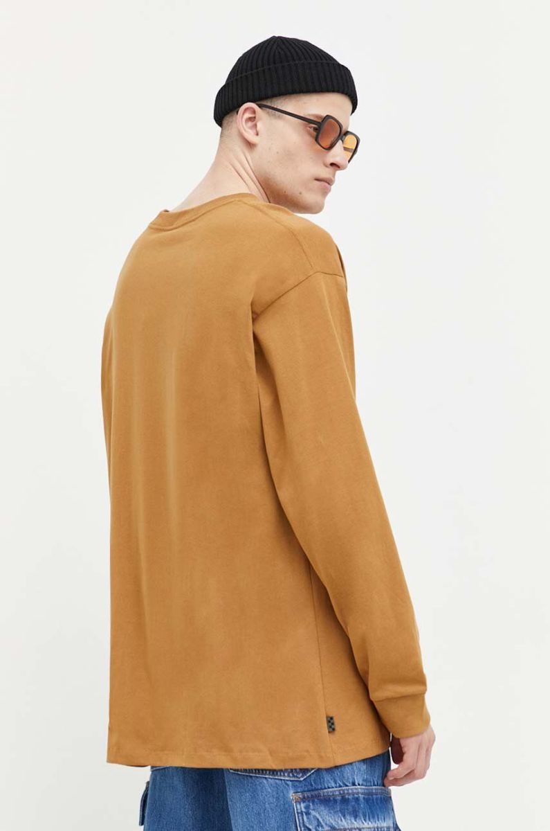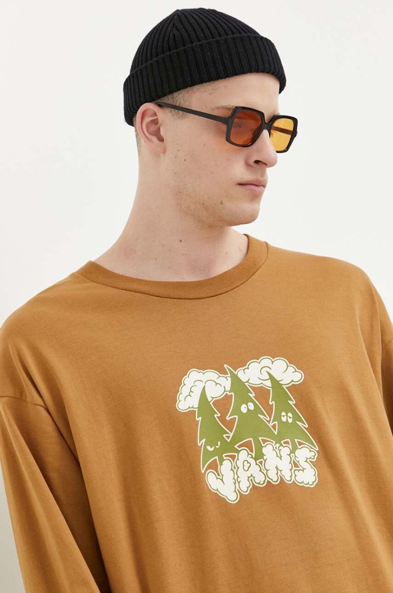 Бавовняний лонгслів Vans колір коричневий з принтом (3212086)